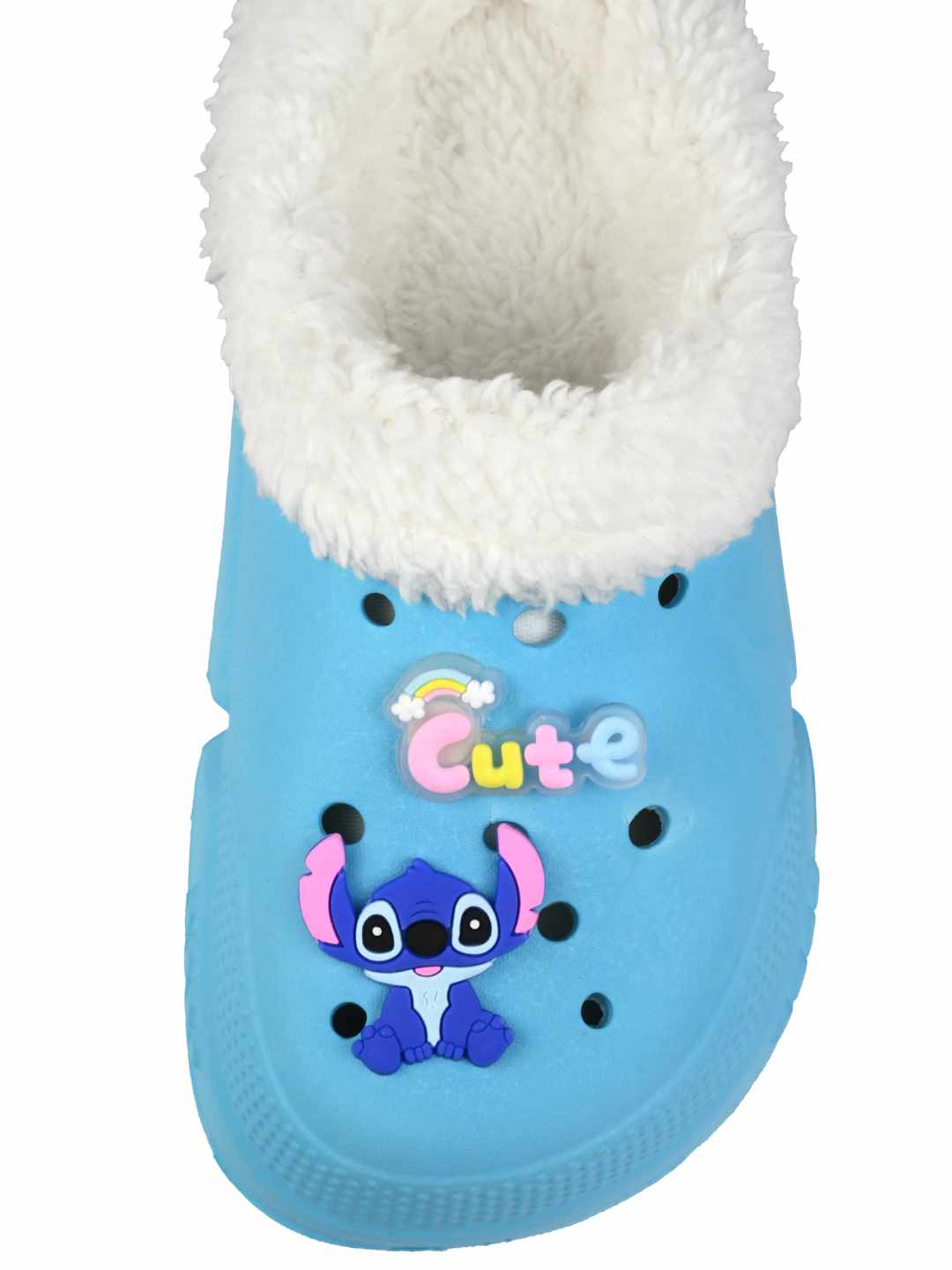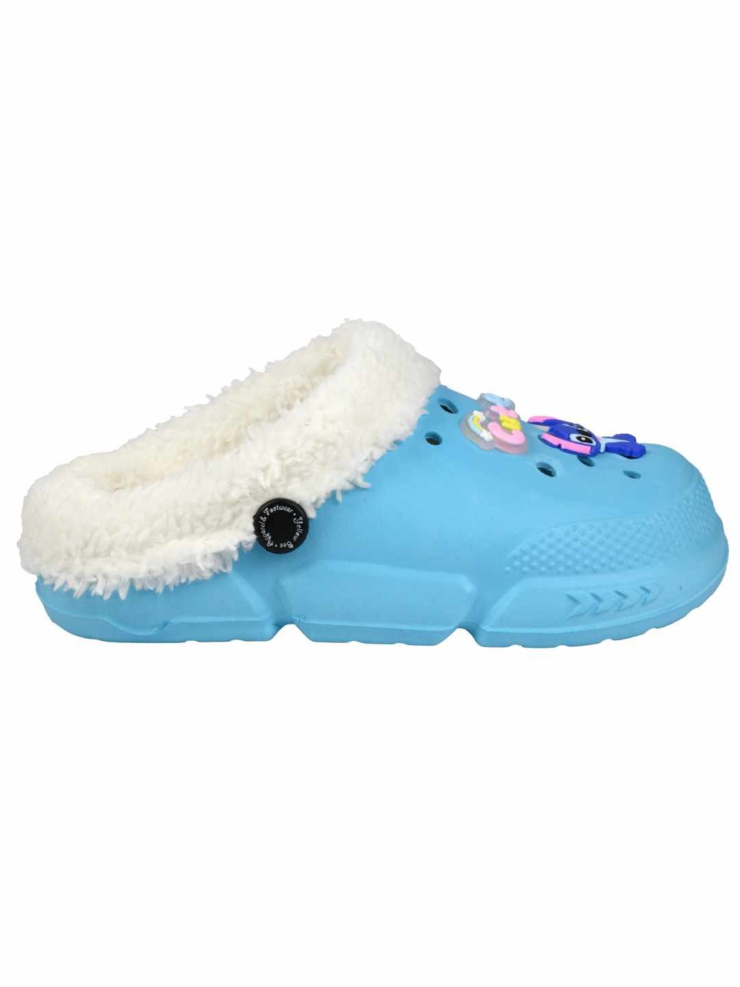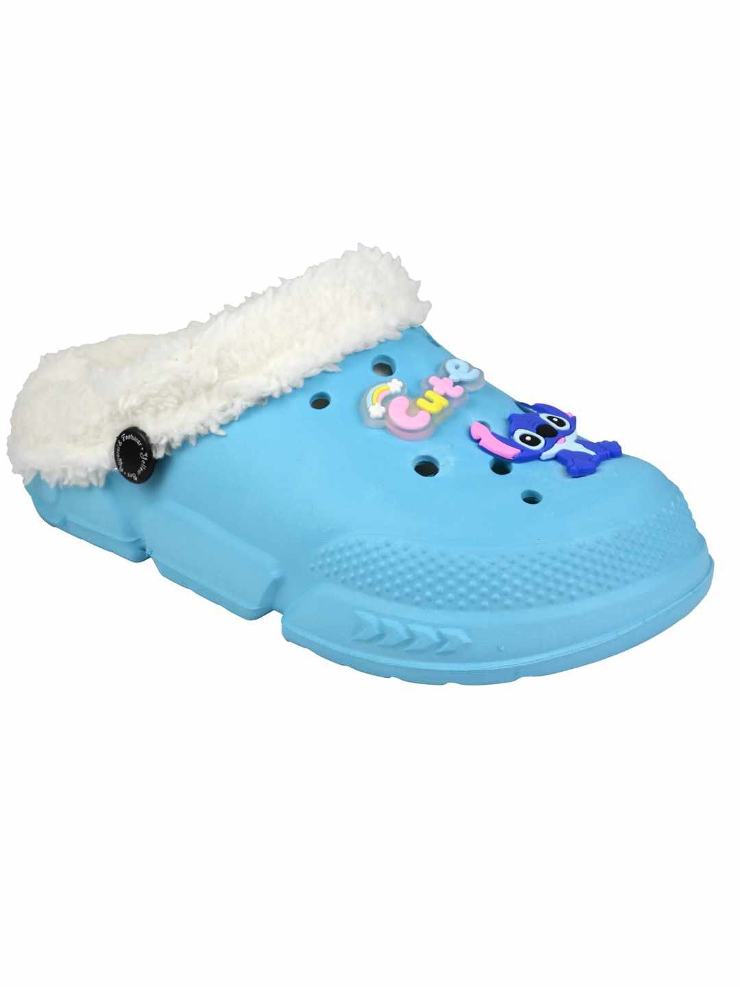 Yellow Bee Girl's Disney Stitch Fur Lined Winter Clogs With Cute Charms - Blue