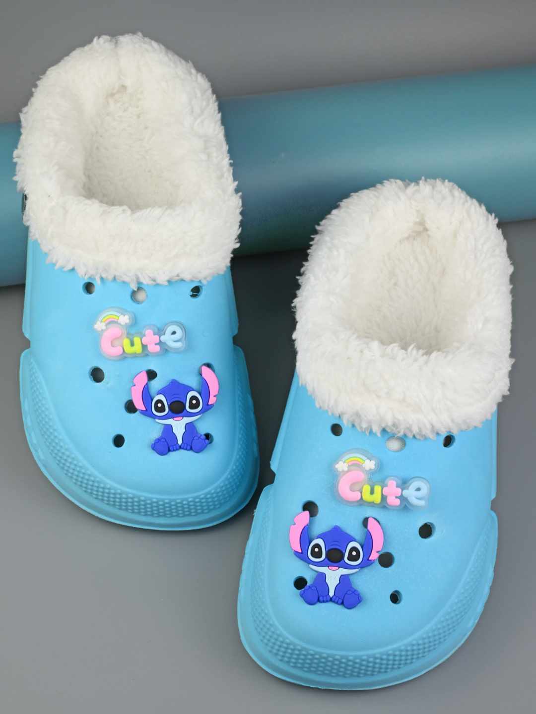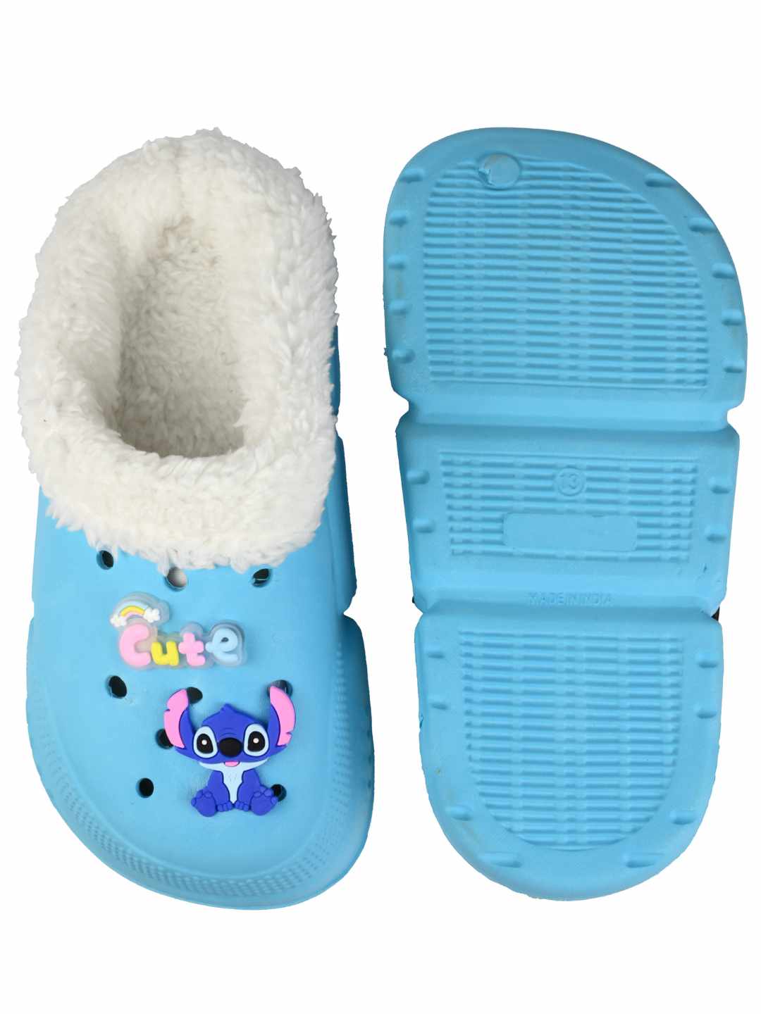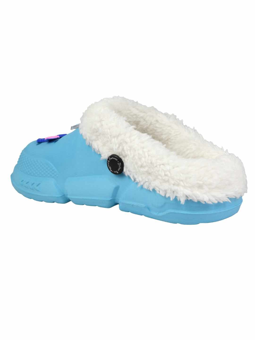 Yellow Bee Girl's Disney Stitch Fur Lined Winter Clogs With Cute Charms - Blue