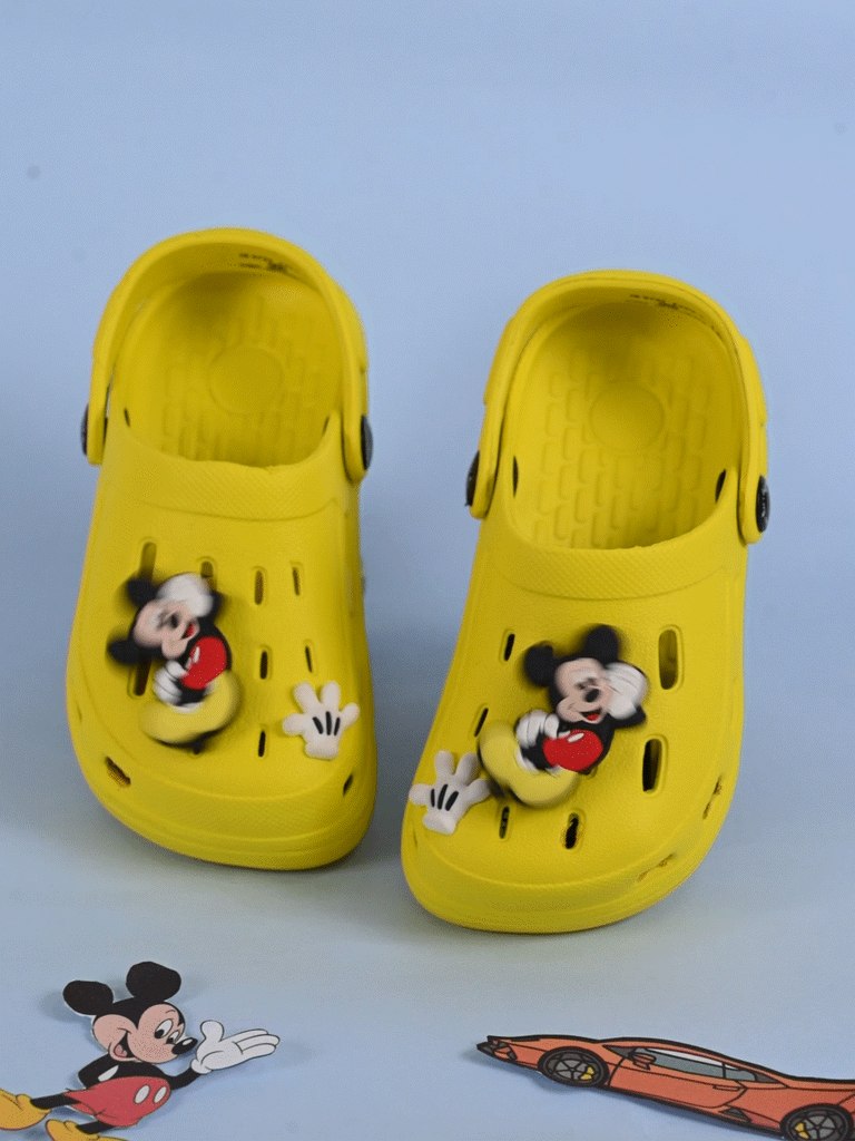 Yellow Bee Boys’ Disney Mickey Mouse Clogs with 3D Character with “Hi!” Charms – Yellow-Creative View