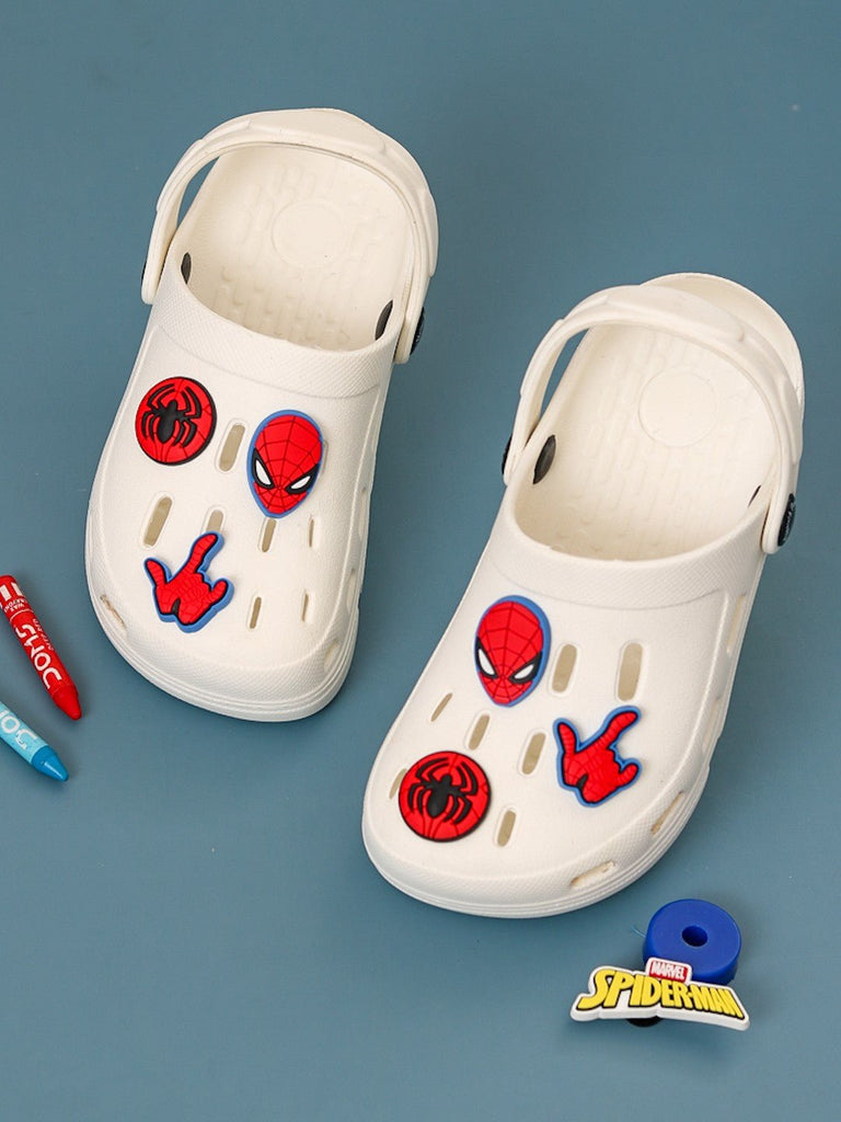Yellow Bee Boys’ Marvel Spider-Man Clogs with 3D Face, Spider Emblem & Web-Shoot Charms – Grey-1