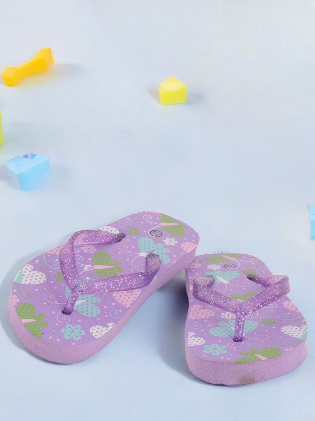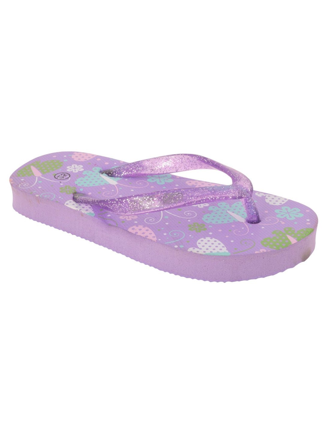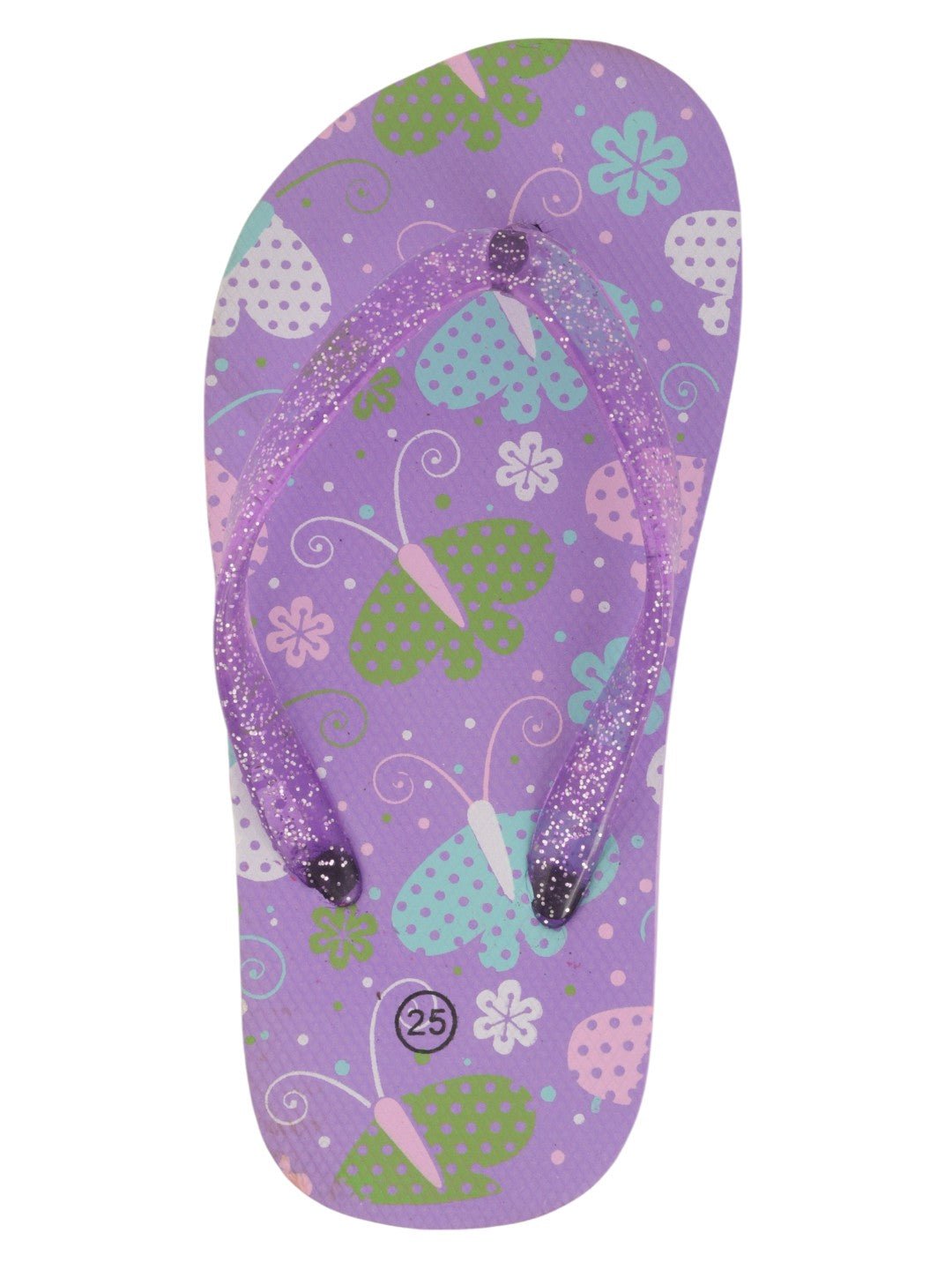 Glittery Butterfly Print Flip-Flops for Girls - Purple