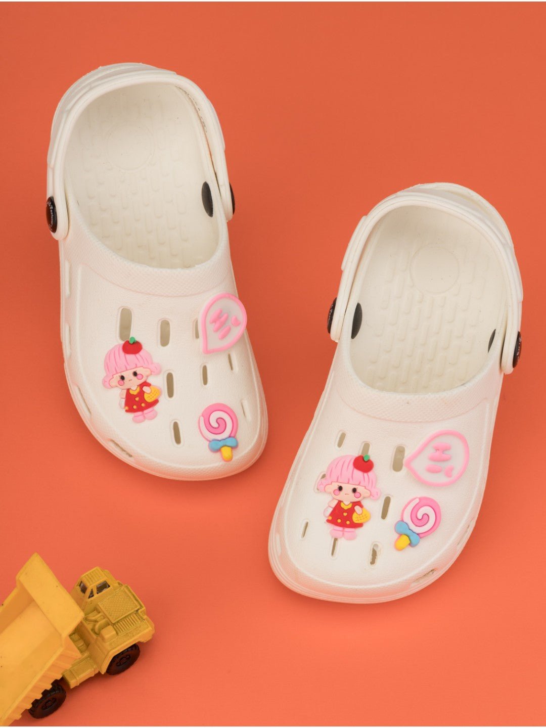 Fun & Comfy Clogs with Sweet Girl & Candy Charms with Hi Accents for Girls- White