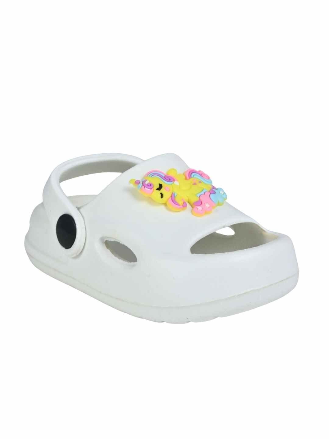 Unleash the magic in every step with the Yellow Bee Magical & Playful Unicorn Charms Sandals for Girls – White. Featuring a cheerful flying unicorn charm on a adorable white base, these clogs bring fun, fantasy, and comfort together. Made from lightweight EVA, they’re soft, durable, and perfect for all-day wear, making them a must-have for little dreamers.