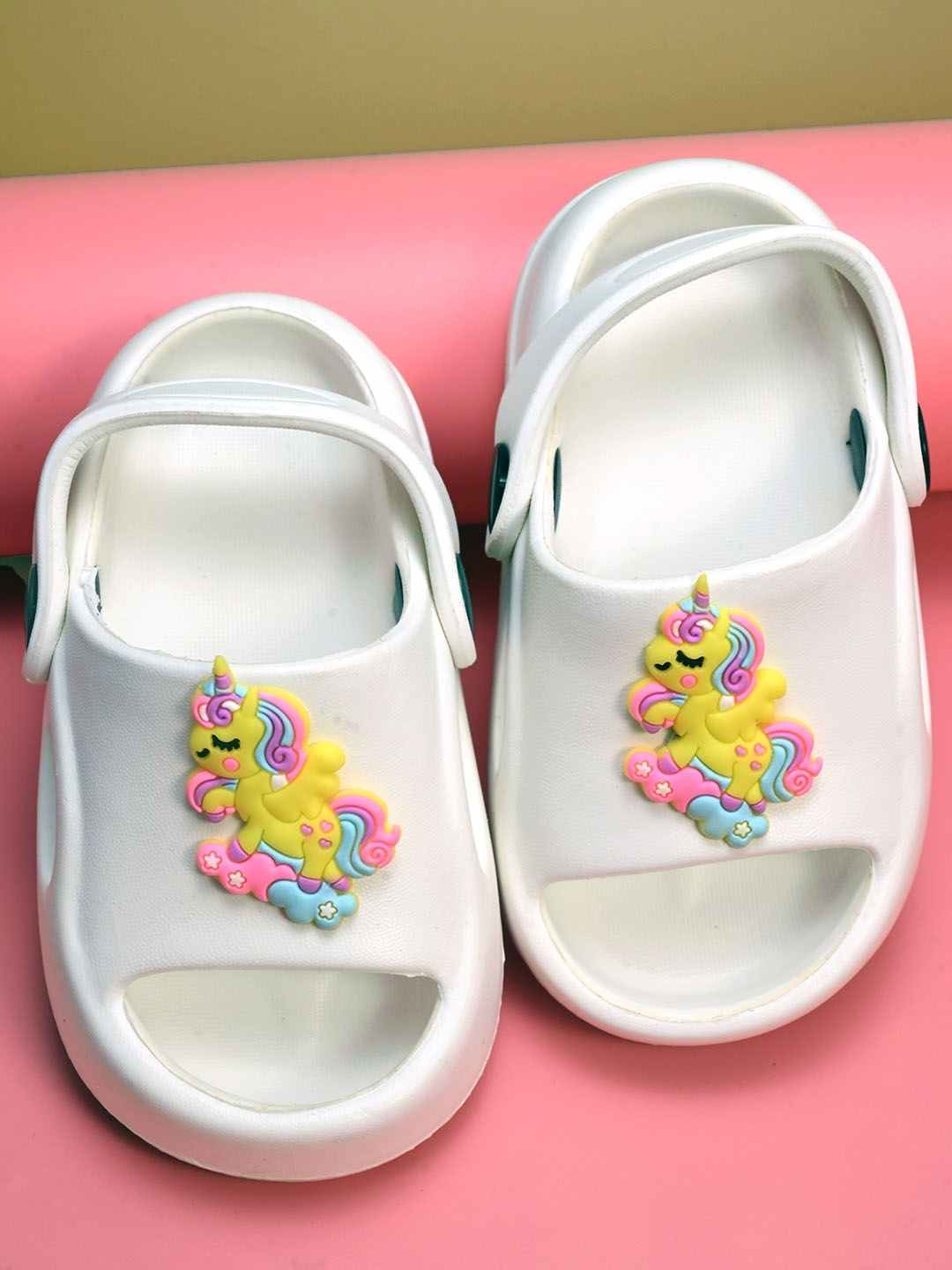 Magical & Playful Unicorn Charms Sandals for Girls – White