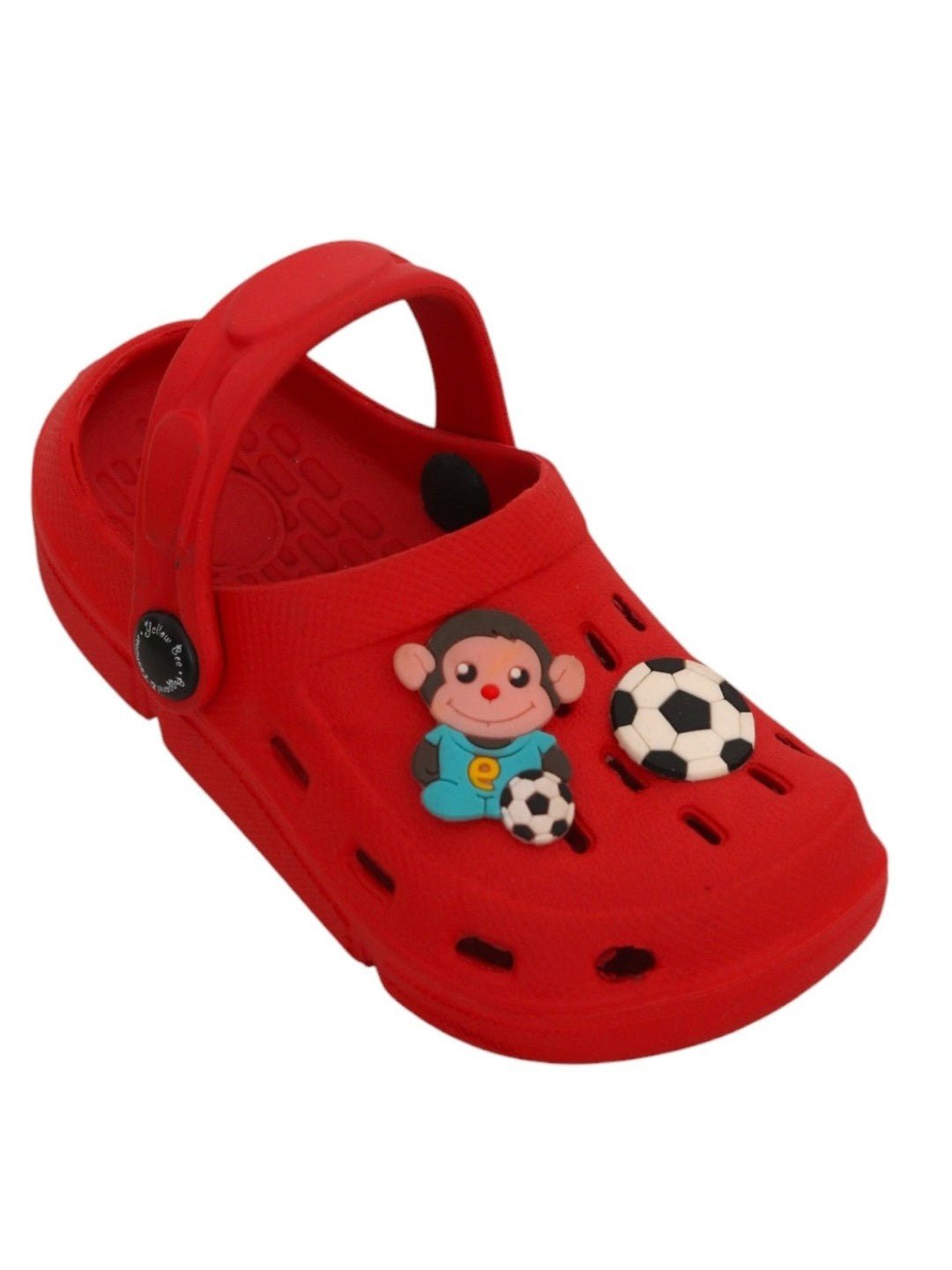 Kick off every adventure in style with these Soccer-Themed Clogs featuring a fun monkey cartoon player and ball design! Perfect for young soccer fans, these clogs combine lightweight comfort, breathable ventilation, and a secure fit for all-day wear. The soft, cushioned EVA sole absorbs impact, while the anti-slip grip ensures stability on different surfaces. Designed with an adjustable back strap, these clogs provide a snug fit, making them ideal for active boys who love to run, jump, and play.