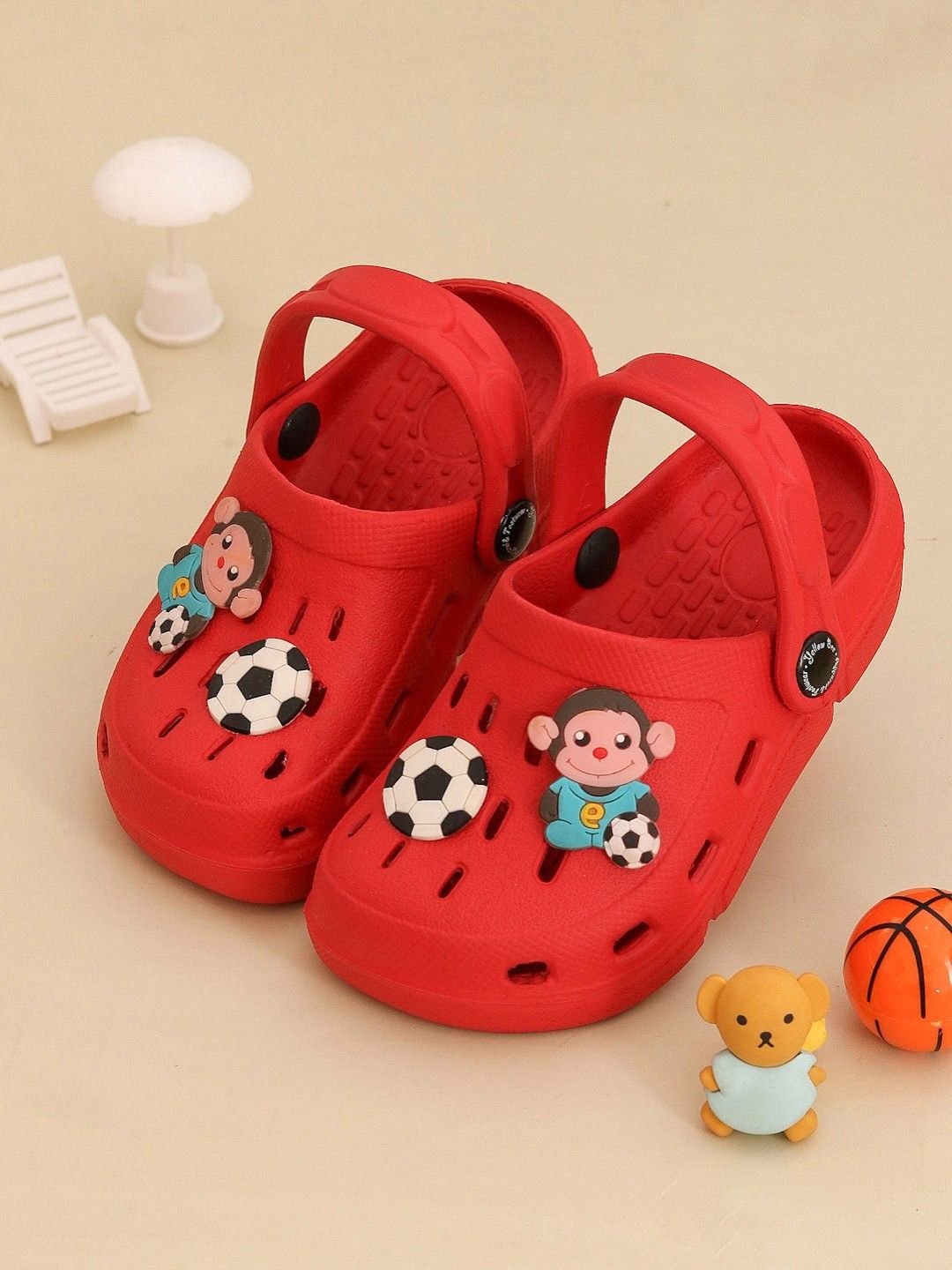 Soccer-Themed Fun Monkey Cartoon and Ball Design Clogs for Boys