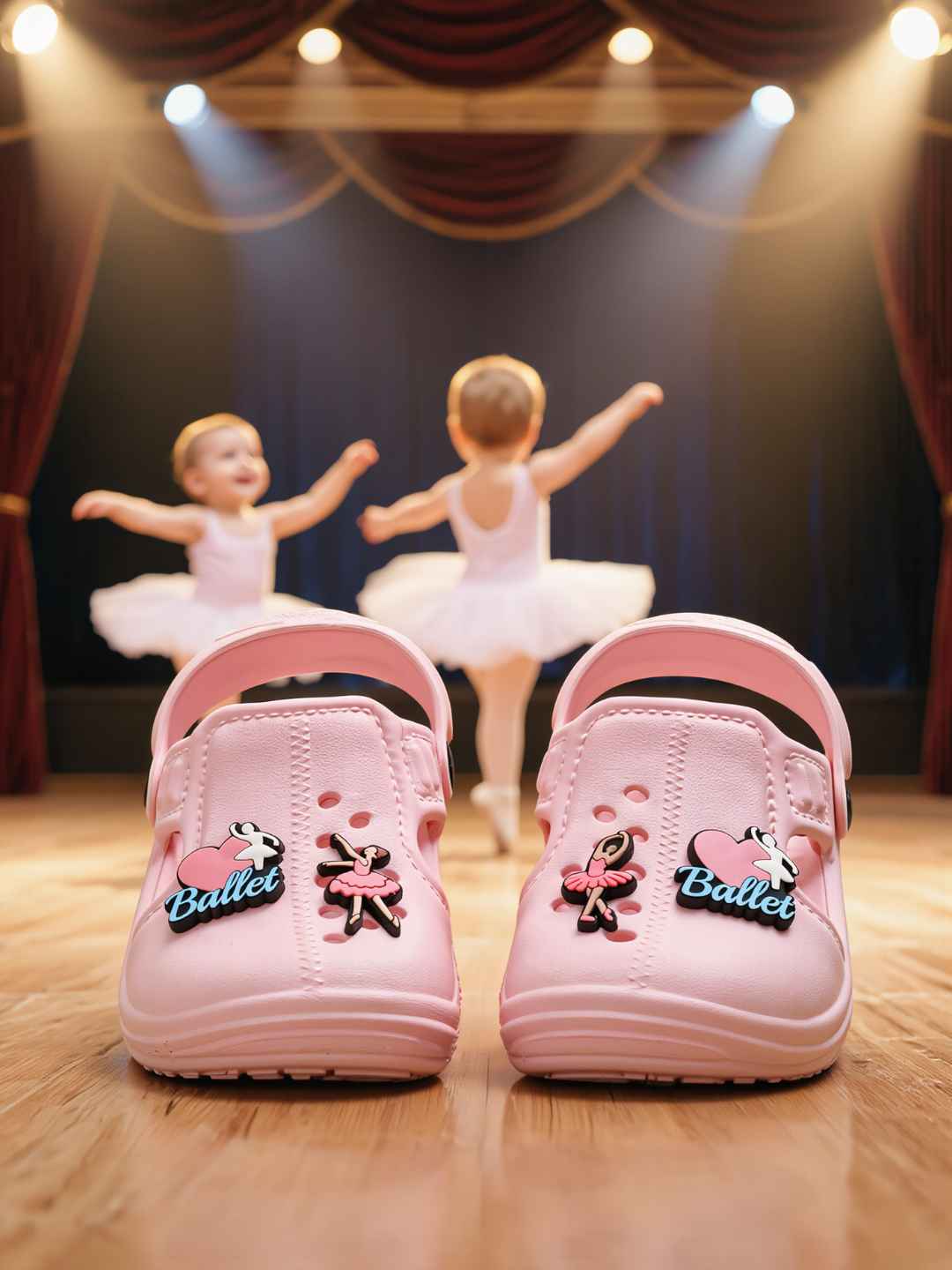 Let her step into a world of grace and charm with the Yellow Bee Stylish Ballet Dancer-Themed Clogs for Girls in Pink. Designed for little girls who love dance and elegance, these adorable clogs feature delightful ballet dancer and “Ballet” heart charms that add a stylish, expressive touch. Crafted from soft and lightweight EVA material, these clogs combine everyday comfort with playful fashion—perfect for twirls, playtime, and everything in between.
