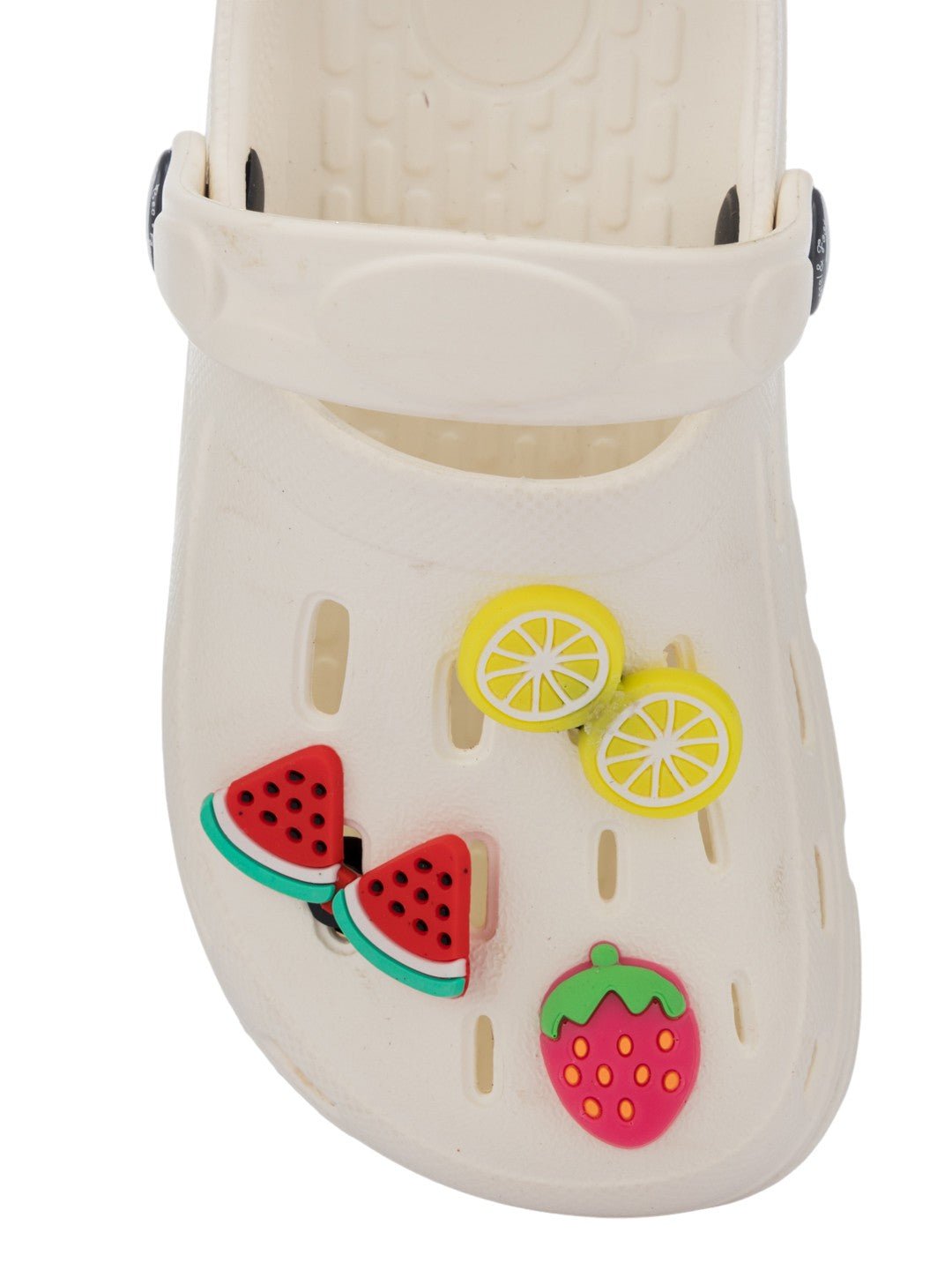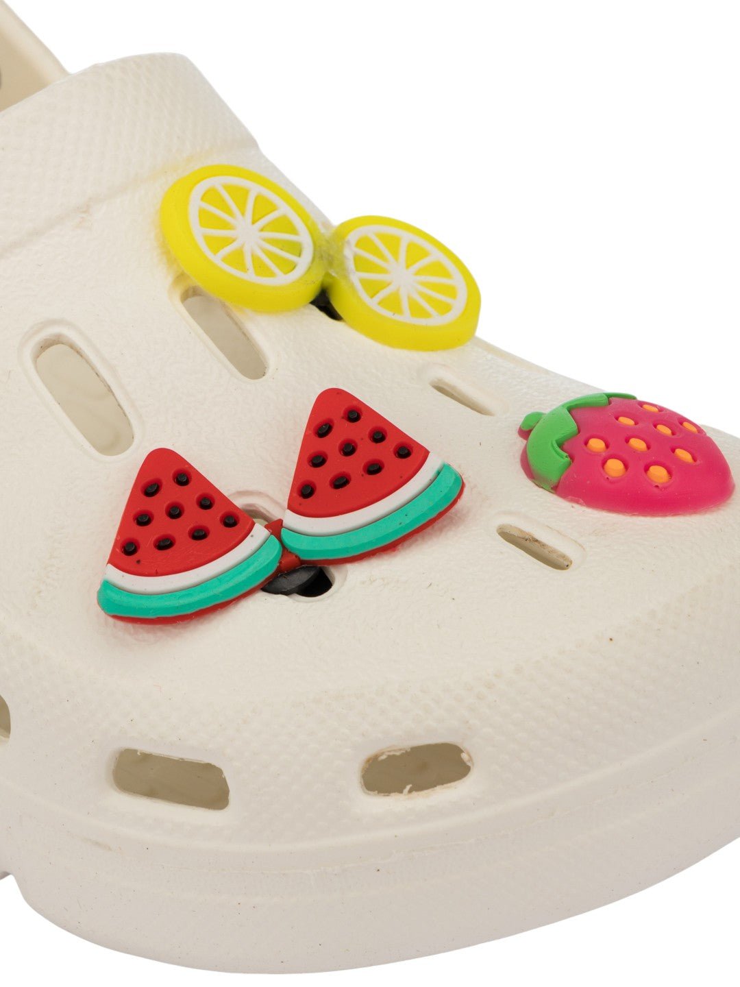 • Vibrant Fruit-Themed Charms:- Featuring adorable charms like strawberries, watermelon, and lemon slices, these clogs turn every step into a splash of summer color and style.