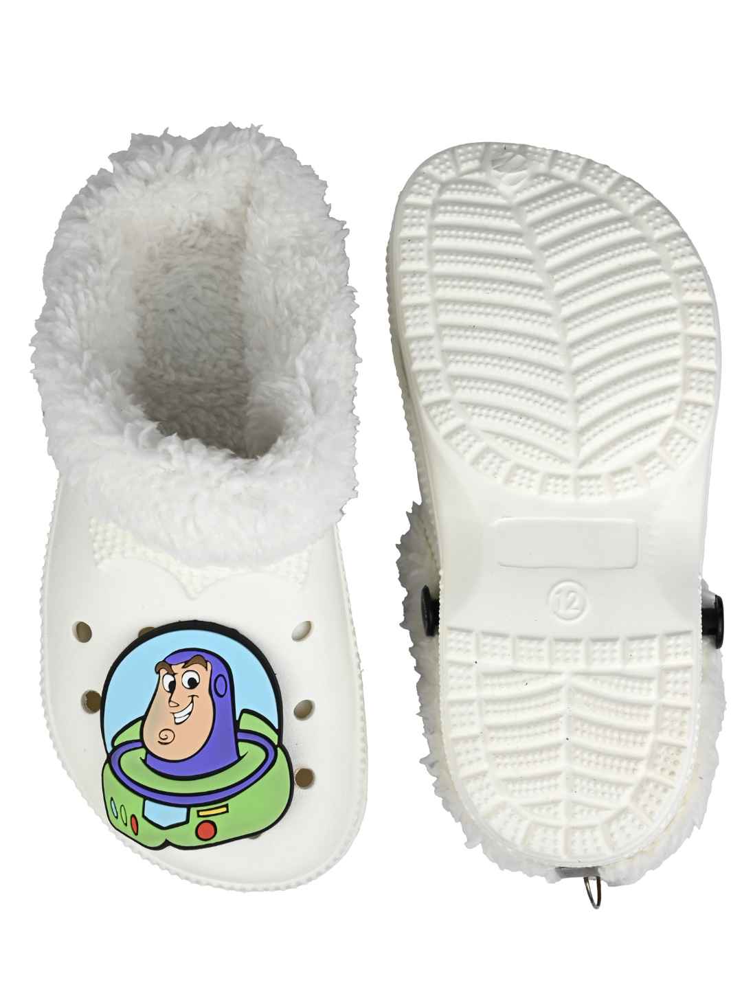 Bring heroic comfort to chilly days with Yellow Bee Boys’ Disney Buzz Lightyear Fur Lined Winter Clogs in White. Designed with a soft plush fur lining and a lightweight EVA build, these slip-on clogs help keep little feet warm while staying easy to wear every day. Featuring the lovable Buzz Lightyear character design, they add Disney fun to winter routines—perfect for home, playtime, and quick outings.