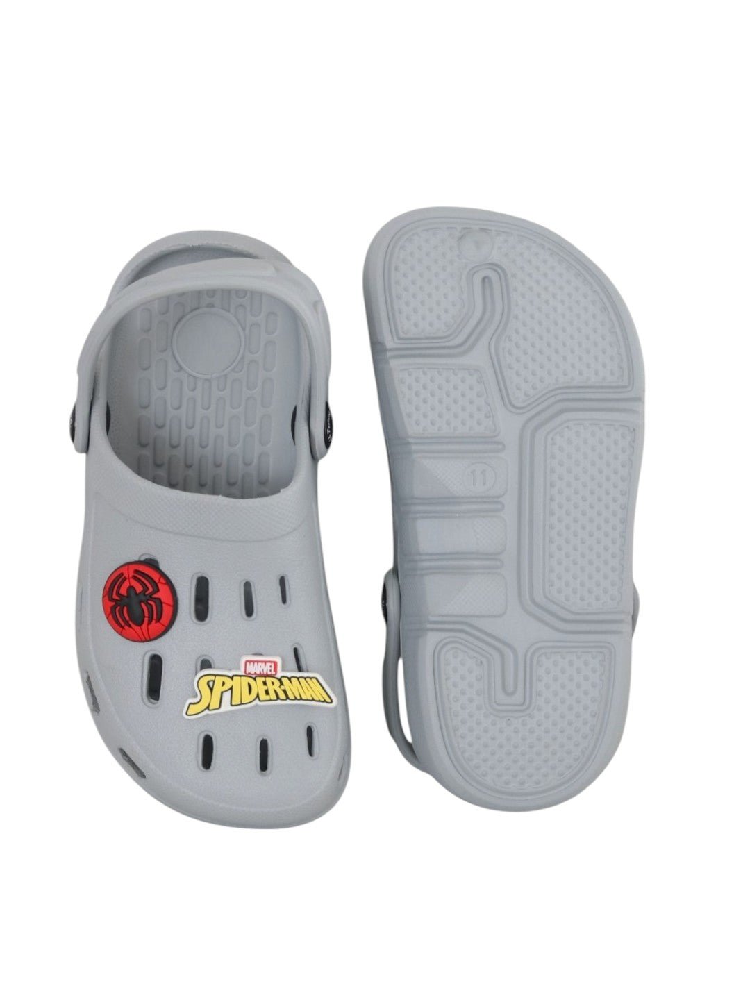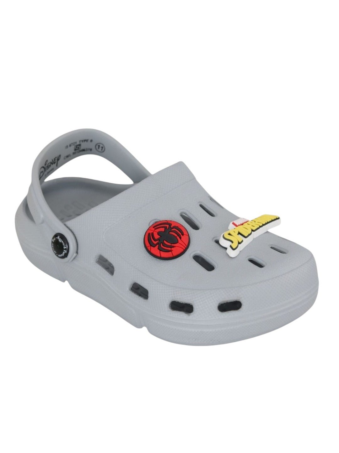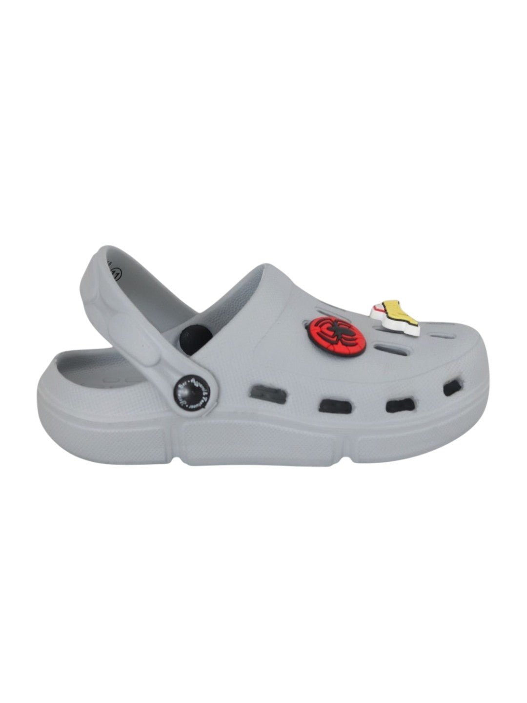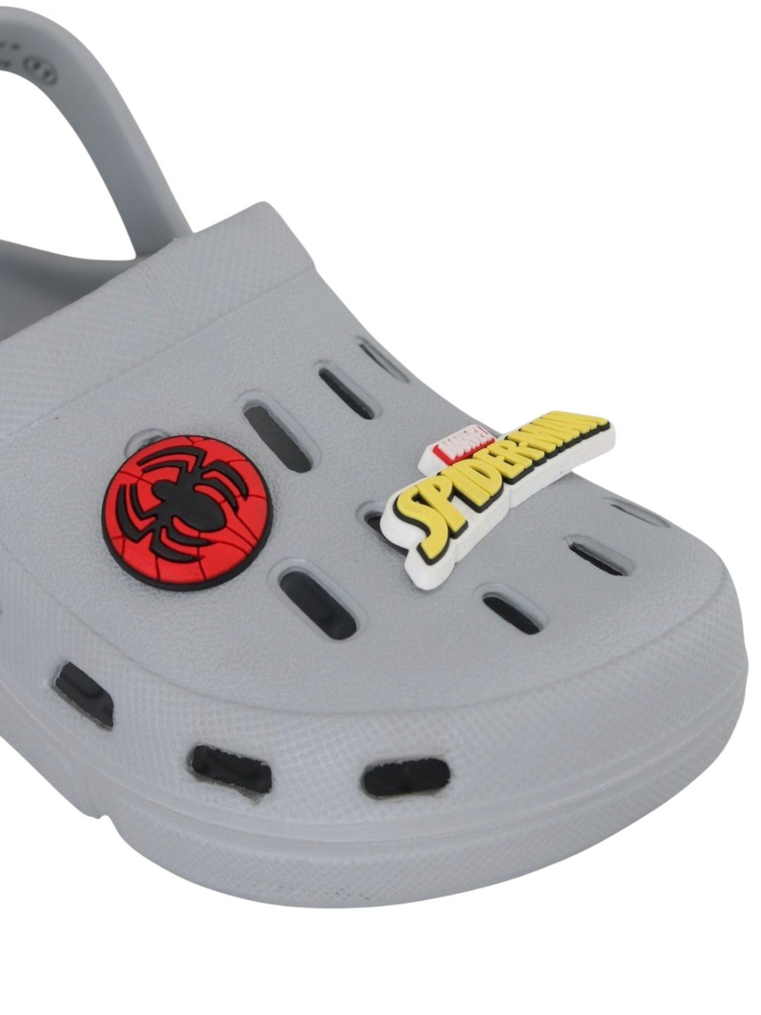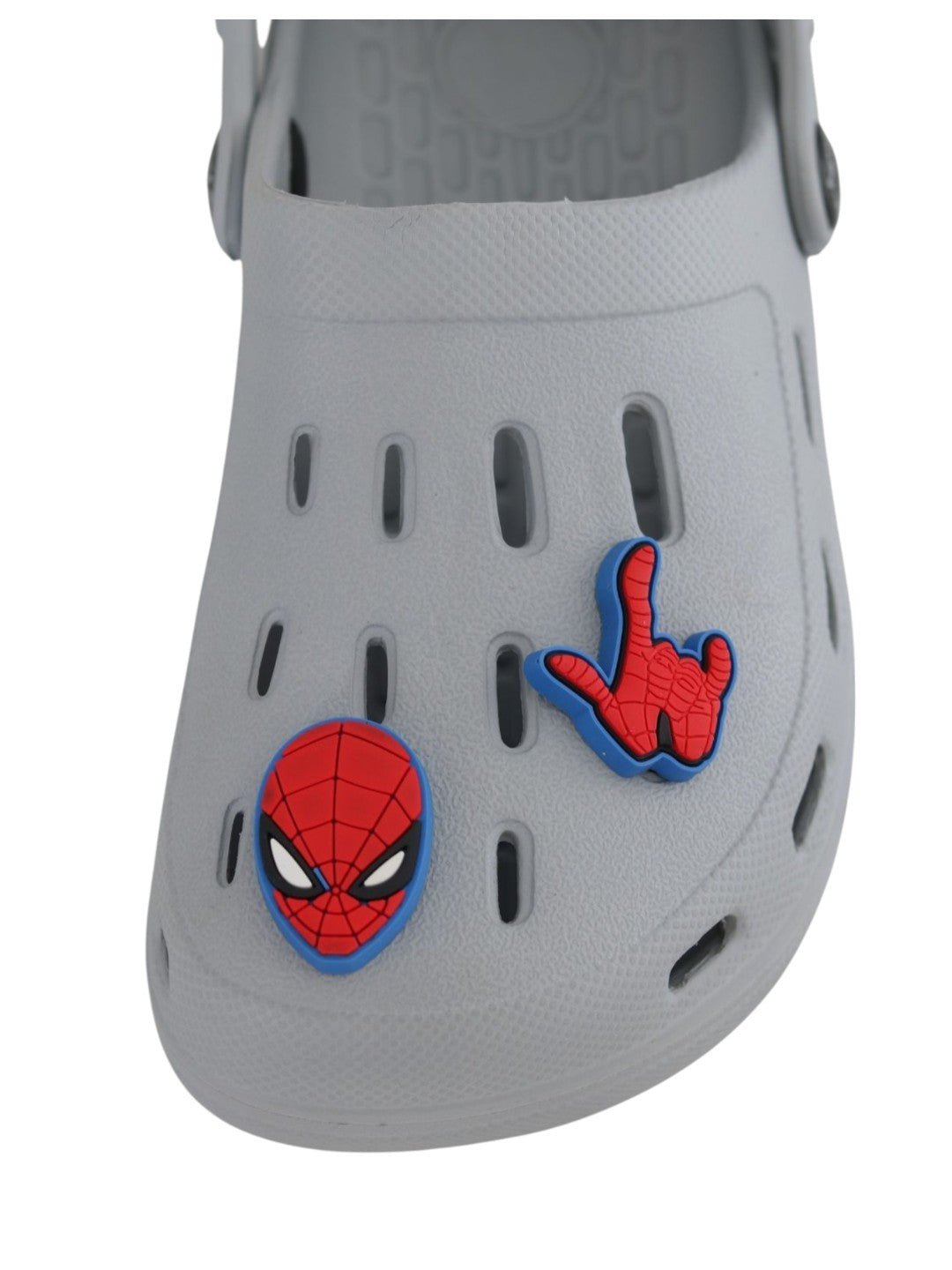 Yellow Bee Boys’ Marvel Spider-Man Clogs with 3D Face, Emblem & Web-Shoot Charms – Grey