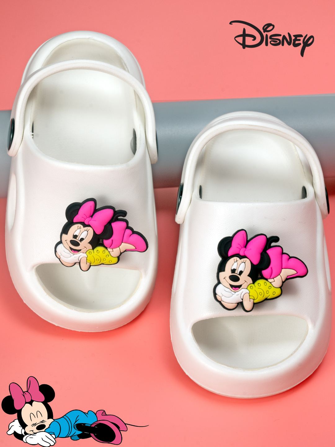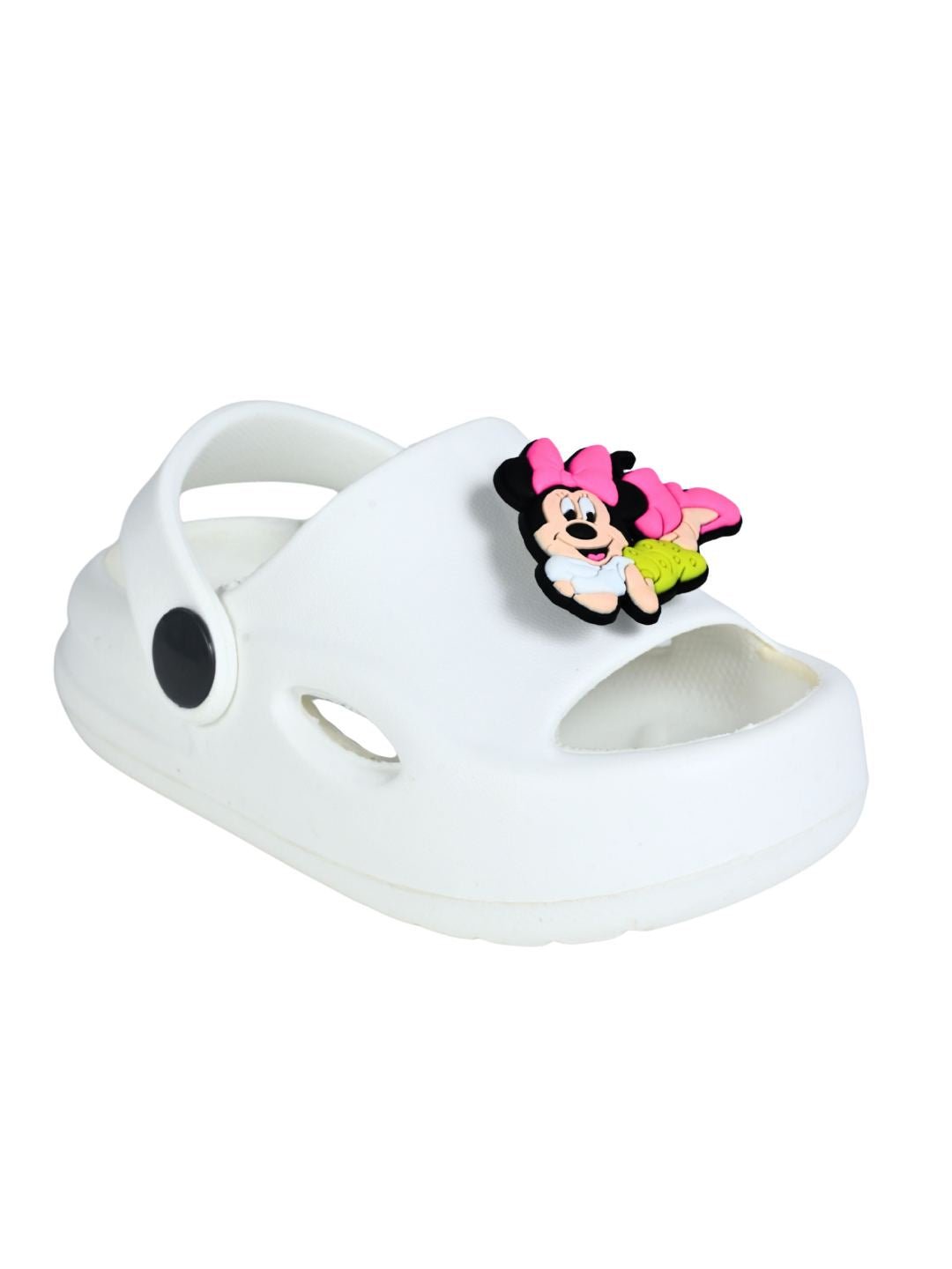 Brighten up your child’s steps with the Sweet & Trendy Disney Minnie Mouse Rotating Charms Sandals for Girls – White. Featuring an adorable rotating Minnie Mouse charm and a bold white base, these sandals perfectly balance playful Disney style with everyday comfort. Made from lightweight EVA, they’re soft, durable, and designed for all-day wear, making them a must-have for little Minnie lovers.