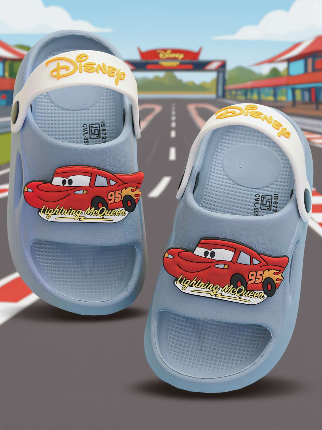 Let him zoom into every adventure with Yellow Bee’s Disney Pixar Cars Lightning McQueen Sandals in cool Blue. Crafted from lightweight EVA, these sandals feel soft and flexible for all-day comfort—perfect for playground runs, holiday trips, and everyday fun. Featuring the bold Lightning McQueen design and a white slingback closure for a secure fit, they’re made for little racers who never slow down.