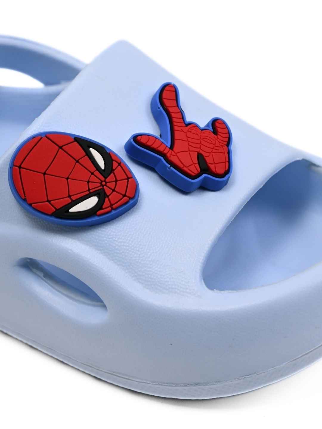 Yellow Bee Boys’ Marvel Spider Man Sandals with Superhero Emblem Charms – Blue