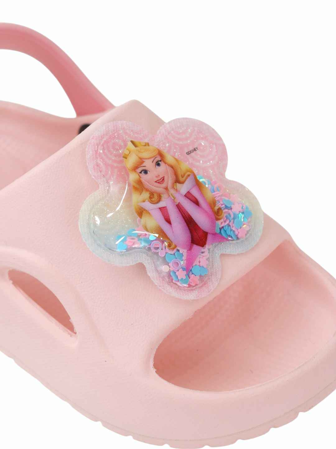 Bring fairy-tale sparkle to her everyday look with Yellow Bee’s Disney Princess Aurora sandals in pink. Featuring shimmering floral sequin charms with an adorable Aurora centerpiece, these EVA sandals are made for comfort, easy wear, and playful styling—finished with a slingback closure that helps keep little feet secure during busy days.