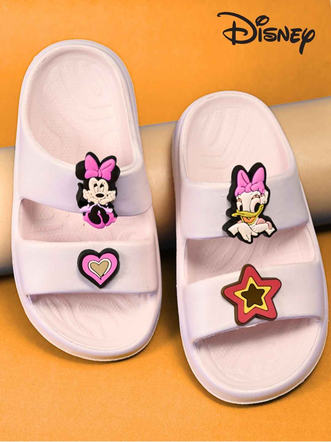 Yellow Bee Girls’ Disney Minnie & Daisy Slides with Heart & Star Charms- Pink