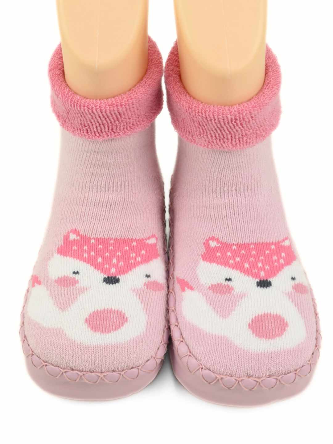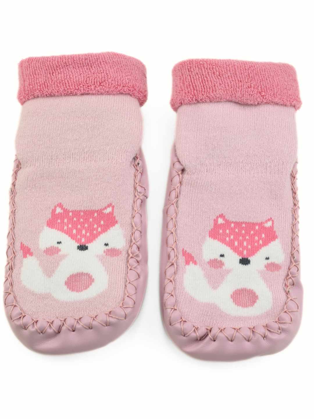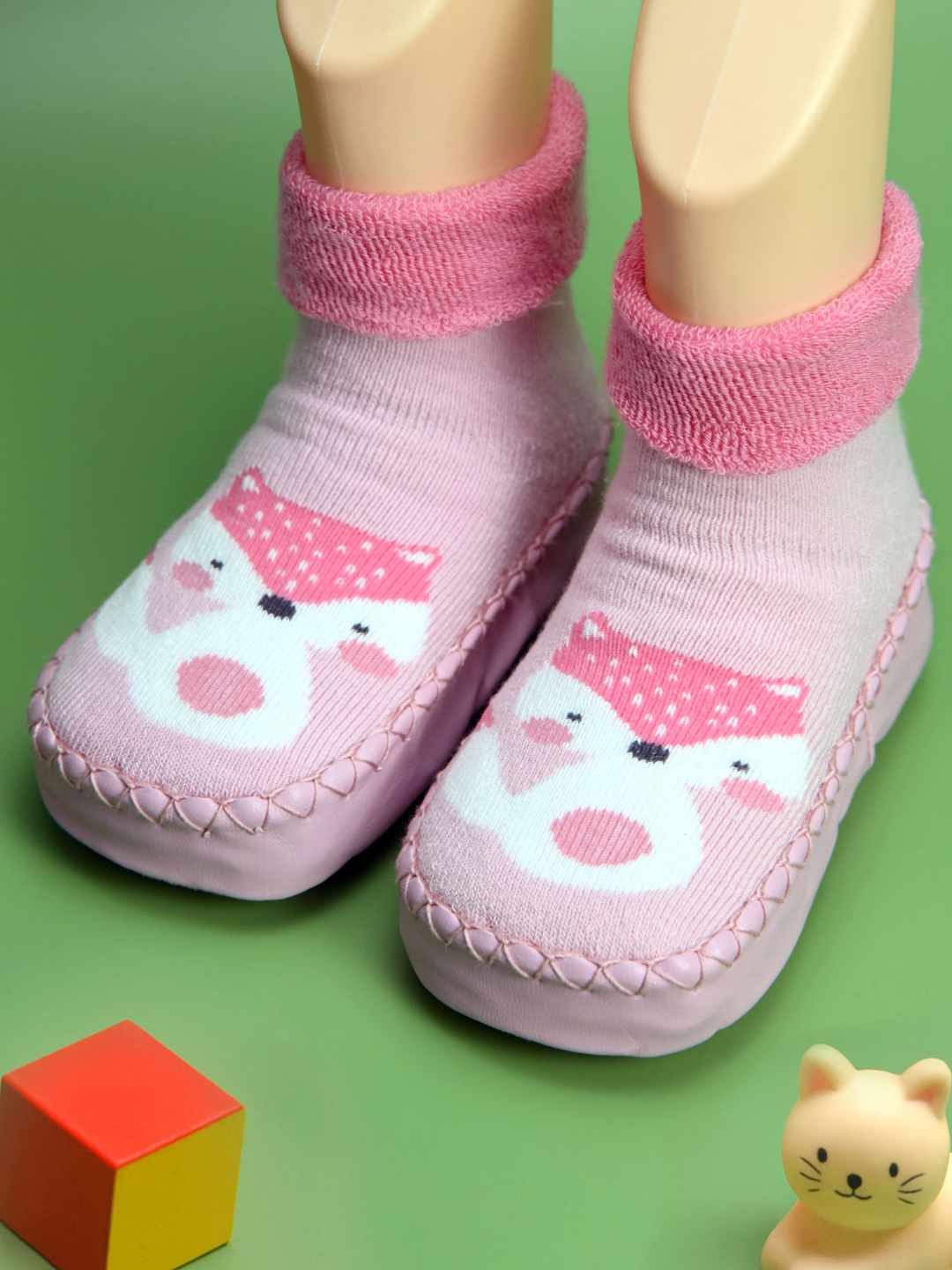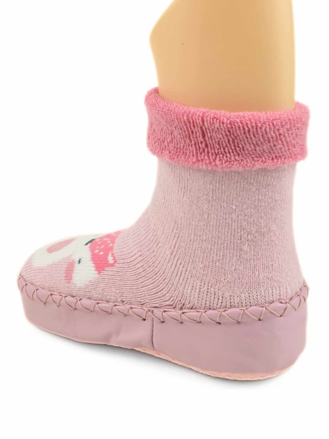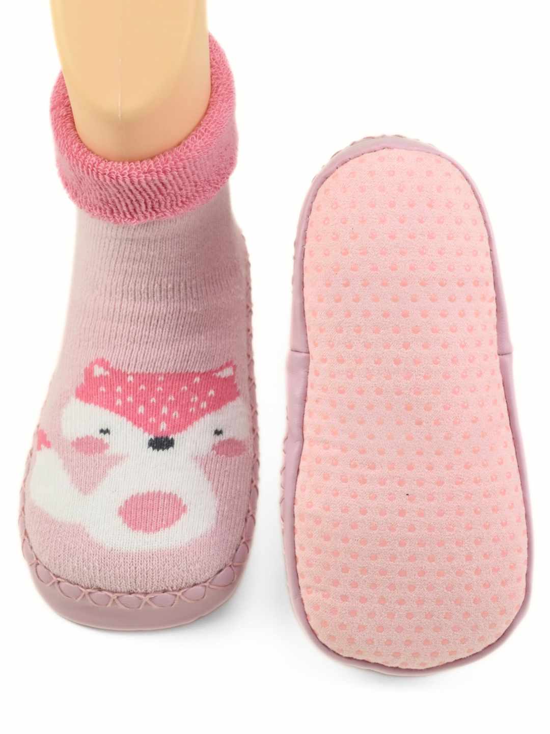 Cute & Cozy Leather Socks with Fox Design for Girls Pink