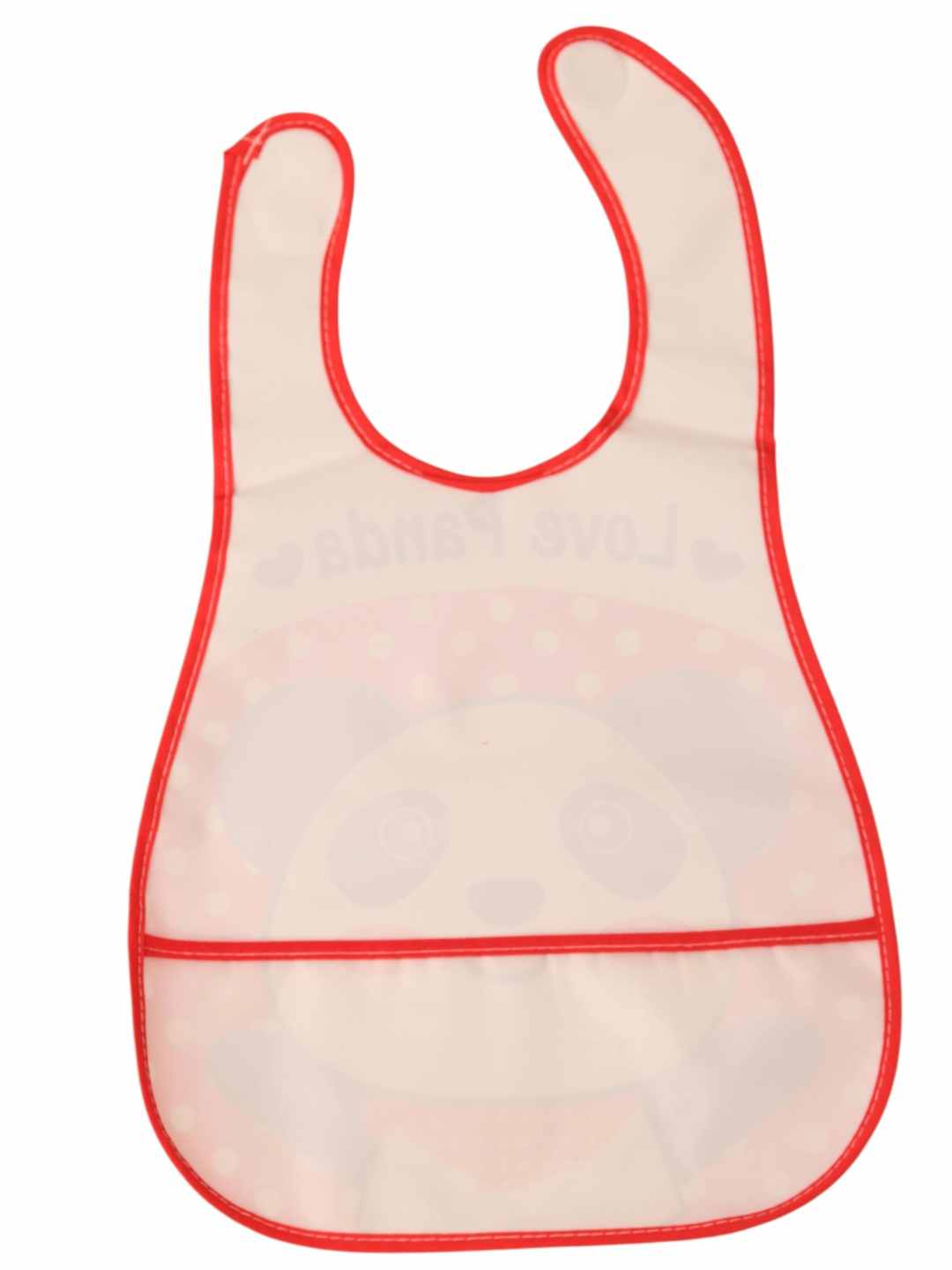 Waterproof Bib – Smiling Panda in Red Polka Style