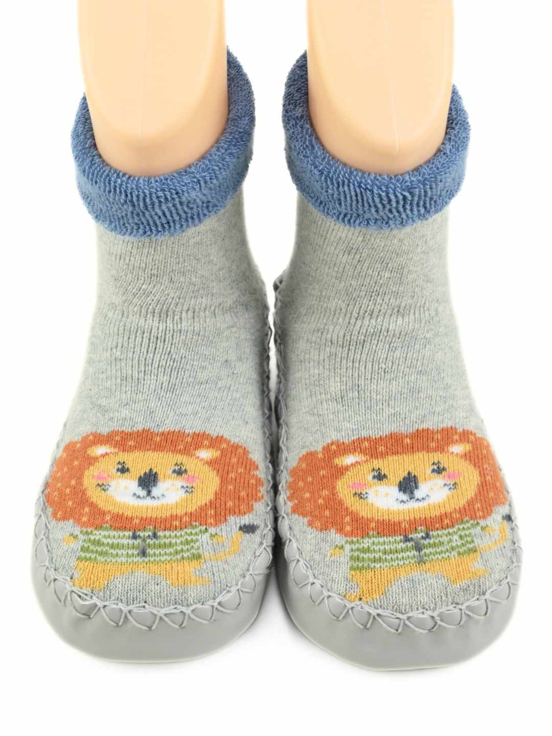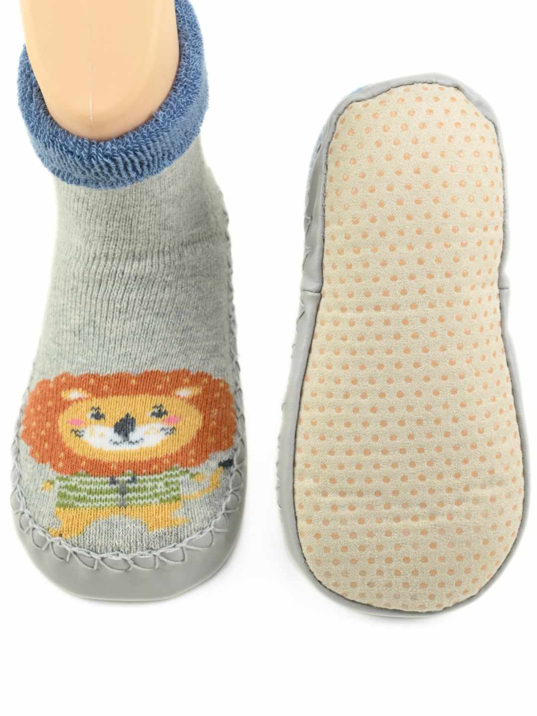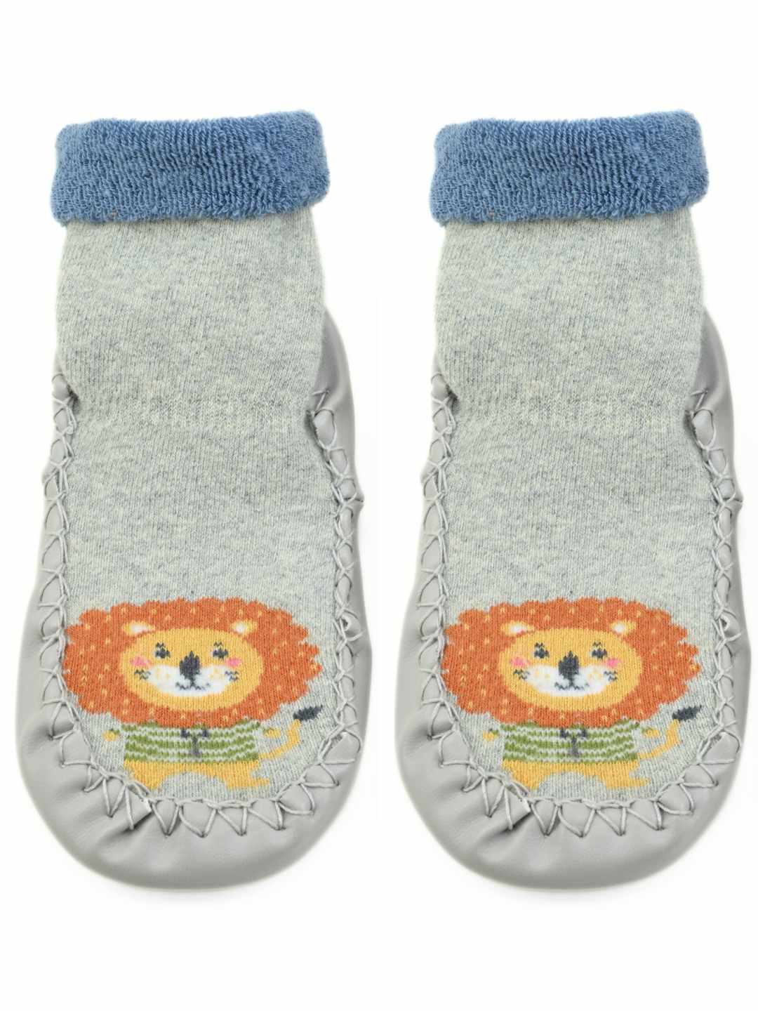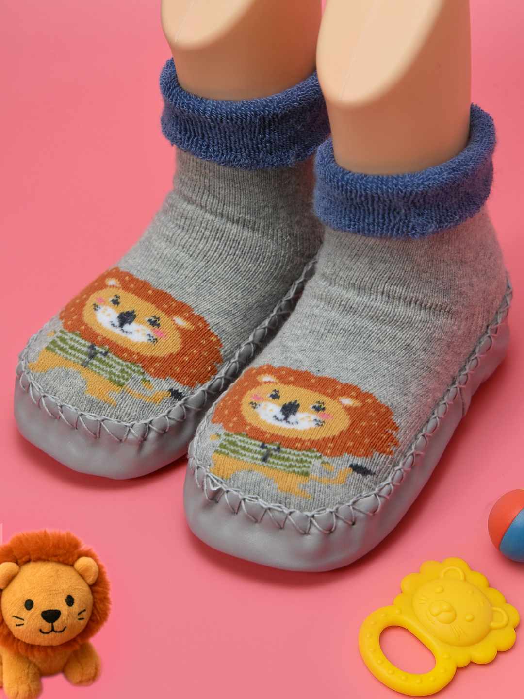 Cute Lion Face Baby Leather Socks for Boys Grey