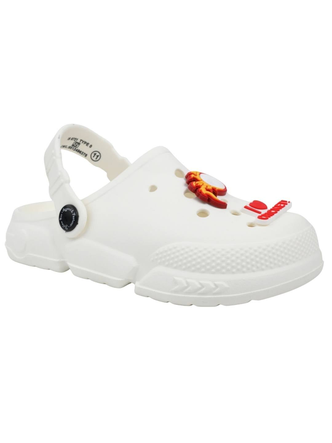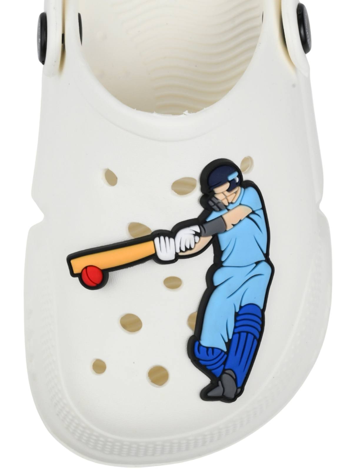 Playful Cricket Player & Ball Charms Clogs For Boys - White