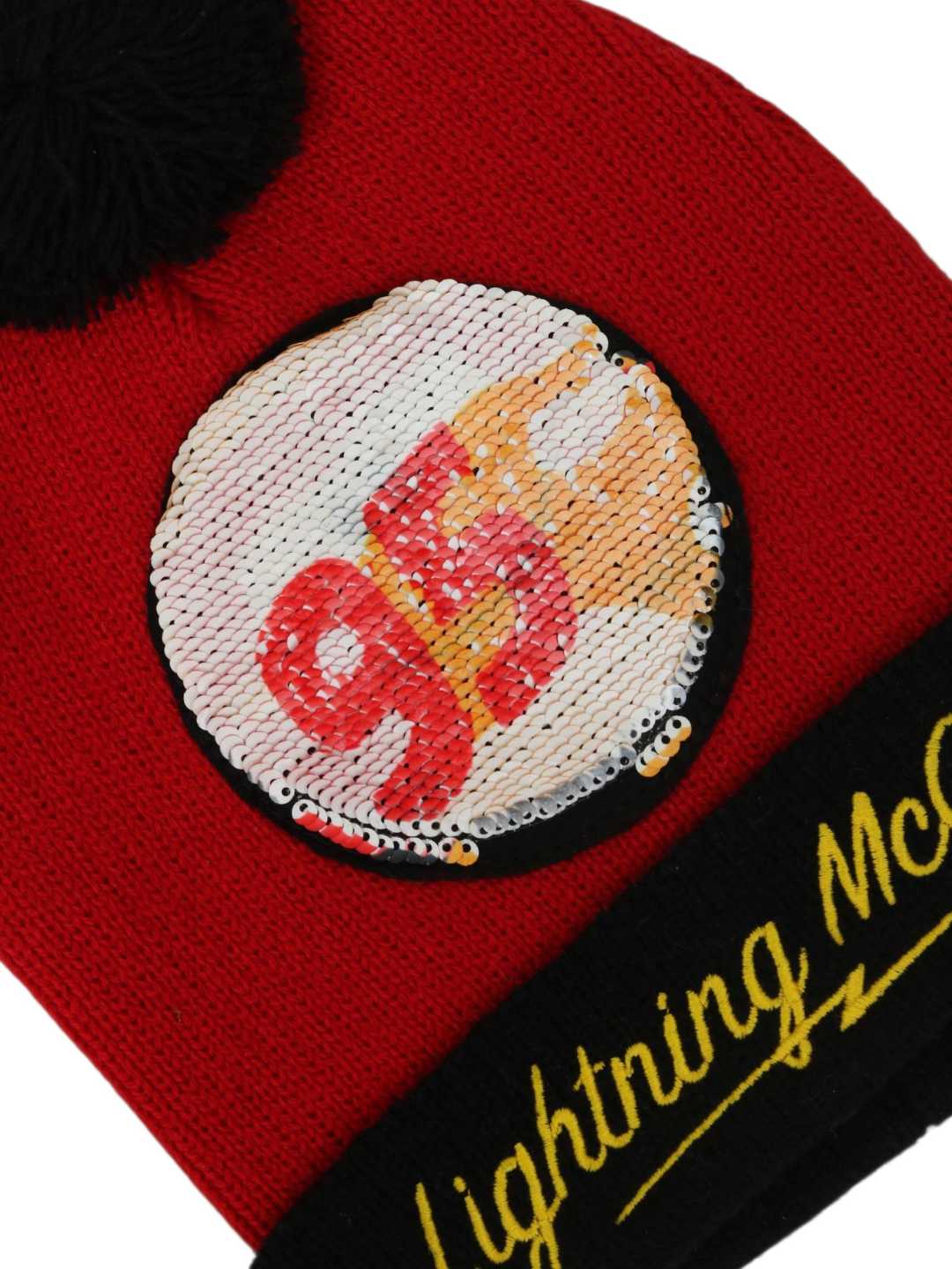 Yellow Bee Boy's Disney Lightning McQueen Flip Sequins Pom Pom Winter Hats - Red & Black