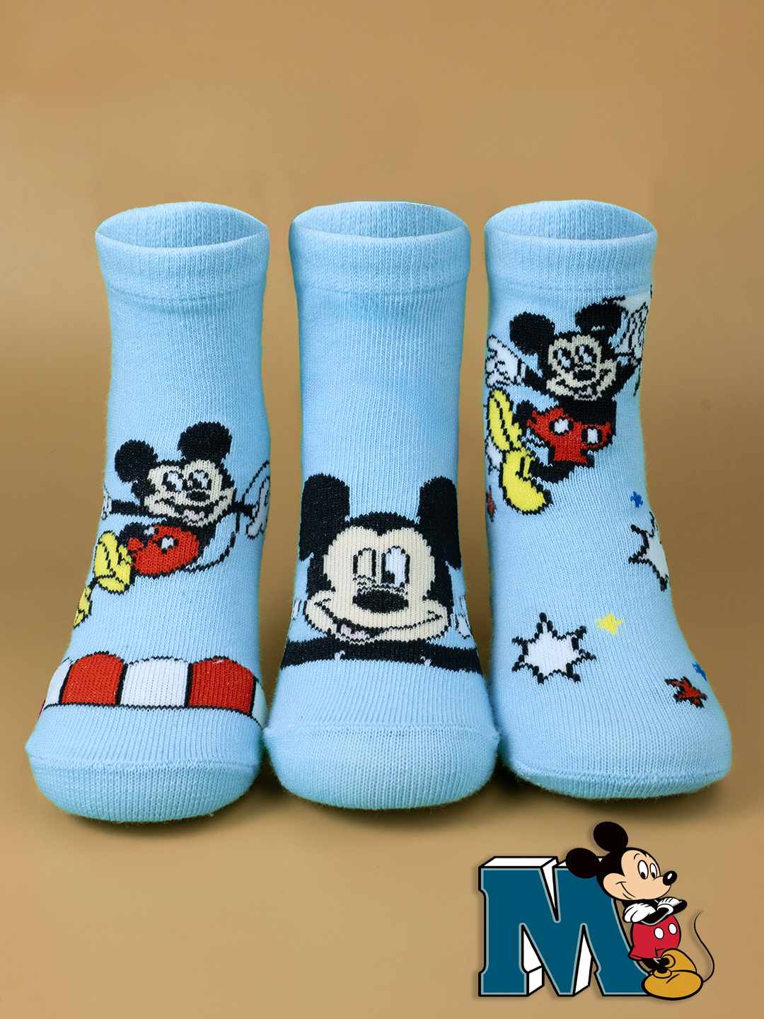 Yellow Bee Boy's Disney Mickey Mouse Design Cotton Socks – Blue-Pack of 3
