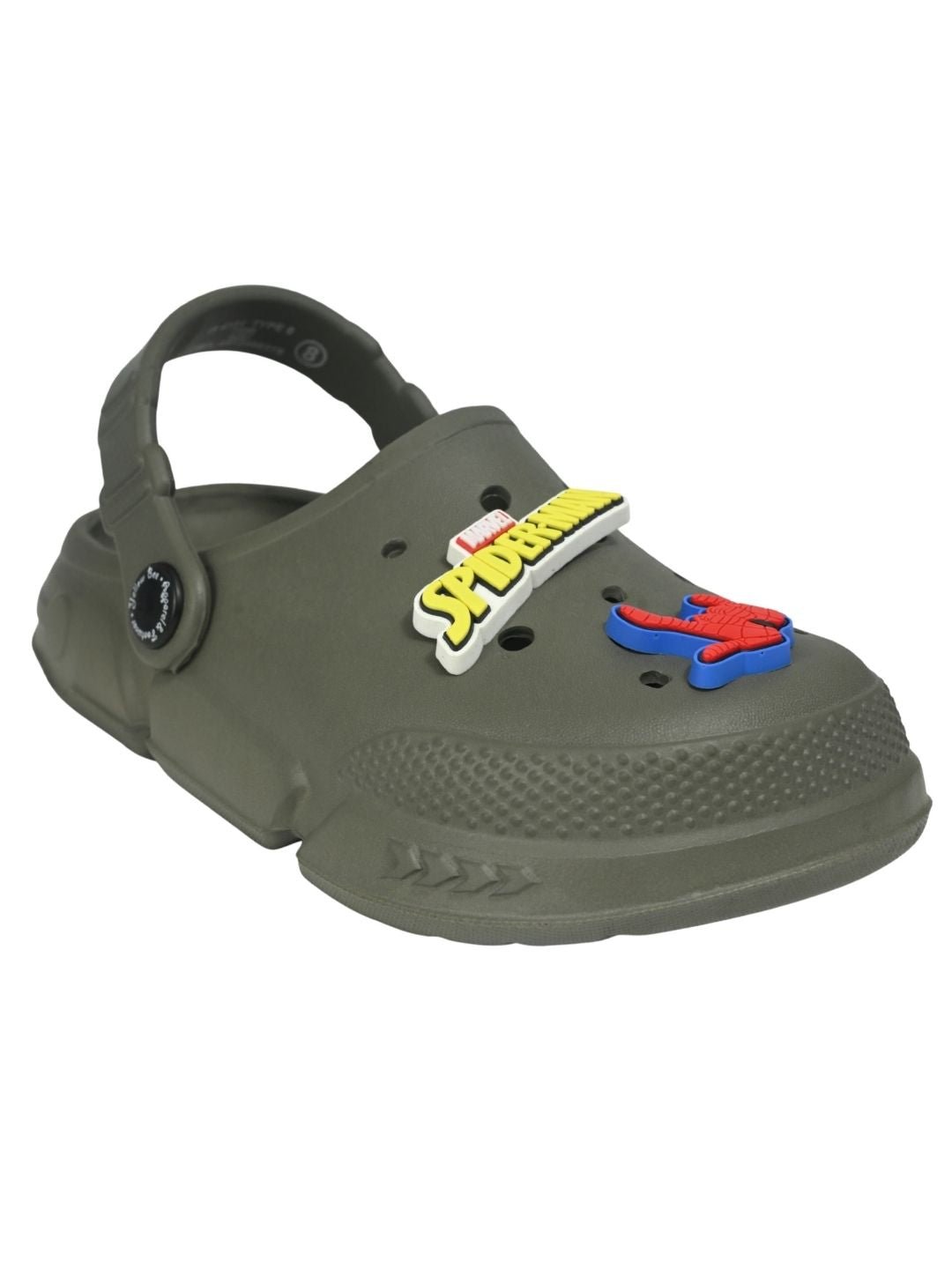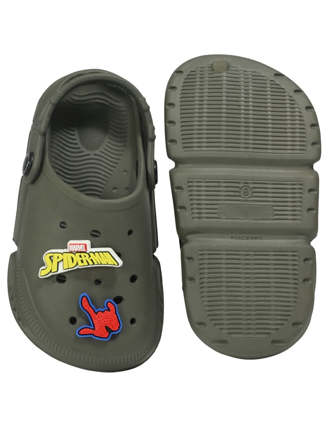 Yellow Bee Boy's Marvel Spider-Man Clogs with Superhero Charms- Olive Green