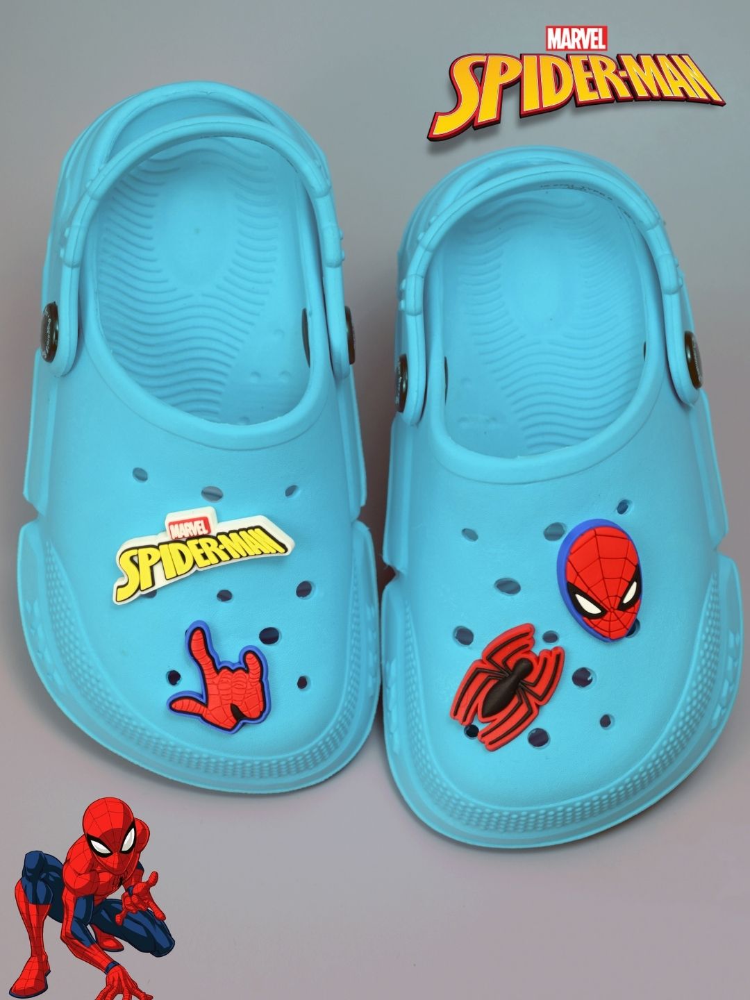 Bring out your little hero’s boldest adventures with the Marvel Spider-Man Blue EVA Clogs by Yellow Bee—a fun, action-packed pair designed for comfort and excitement. These lightweight boys clogs feature vibrant Spider-Man web, mask, and logo charms that instantly catch the eye, making them a favorite pick for toddlers who love superheroes. Designed for daily wear, outdoor play, and all-day comfort, these crocks for boys combine style, durability, and effortless convenience in one perfect pair of toddler footwear..