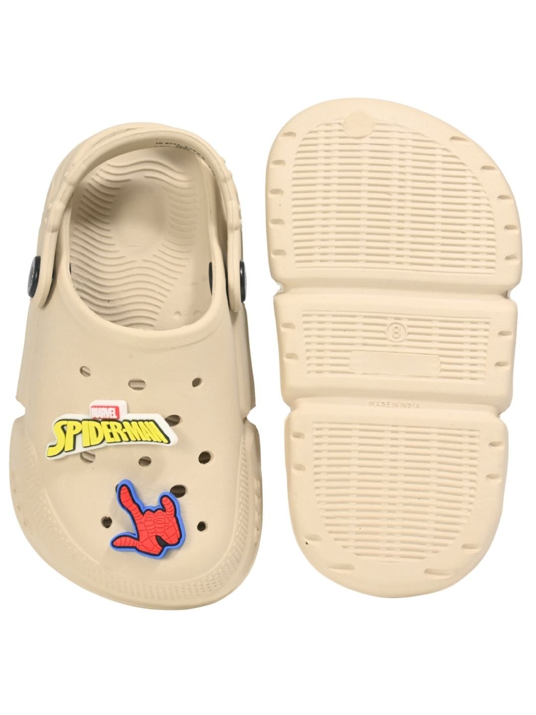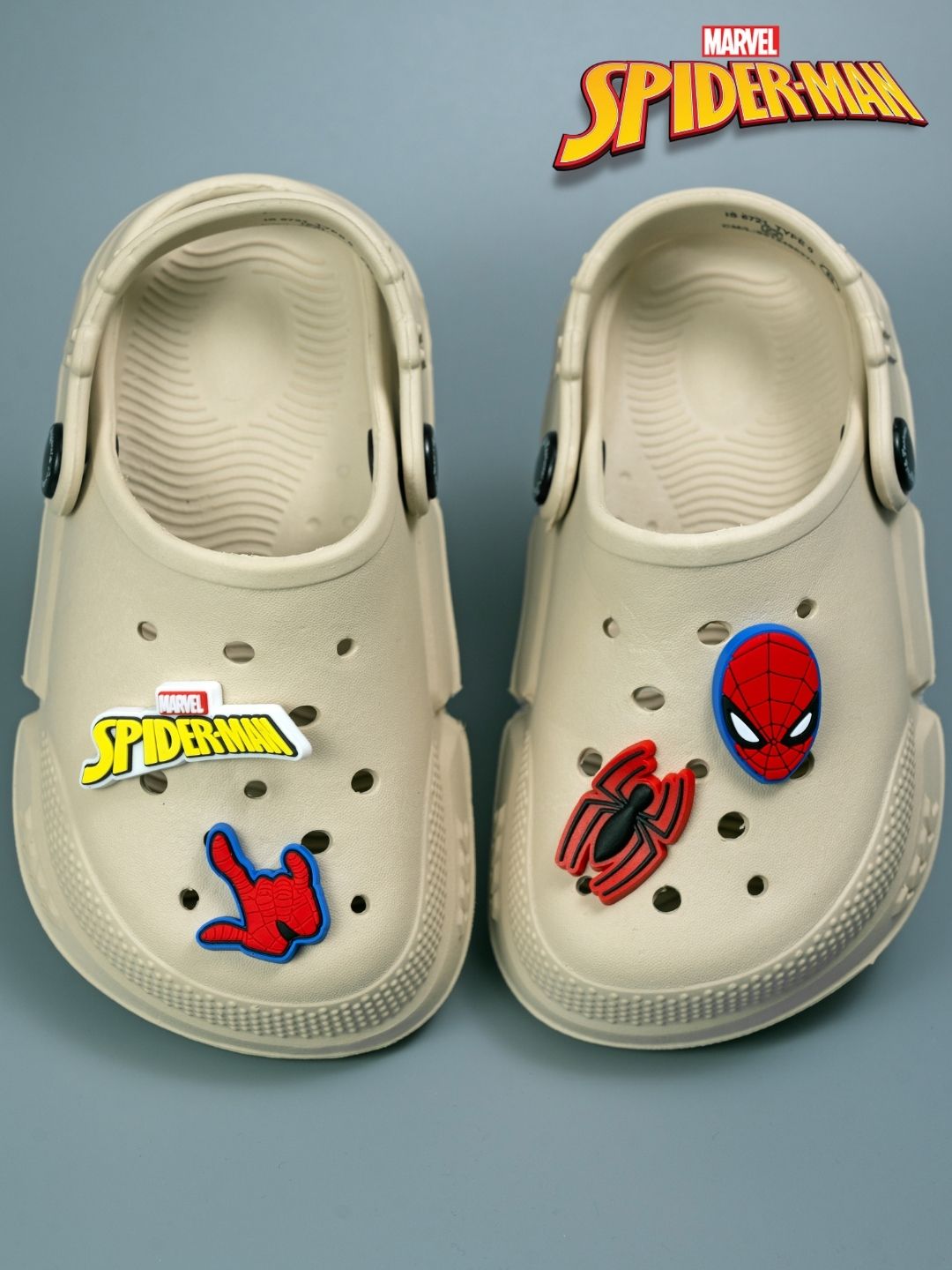 Give your little superhero the perfect mix of comfort, style, and Marvel magic with these Stylish Spider-Man EVA Clogs by Yellow Bee. Designed especially for toddlers and young boys, these beige crocks for boys feature bold Spider-Man web and mask charms that make every step more fun. Crafted from lightweight EVA, these boys clogs ensure all-day comfort whether your child is at home, at play, or on the go. A durable, cushioned design makes them the ideal toddler footwear choice for active little feet. Perfect for everyday wear, school, outings, or simply showing off Spider-Man pride!