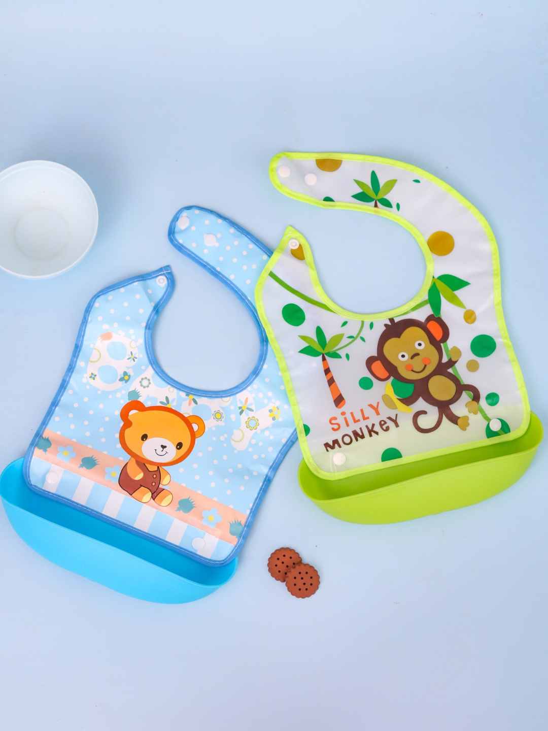 Ideal for babies and toddlers learning to self-feed, this bib set is perfect for parents seeking style and practicality. Simply secure the bib, let your little one explore their food, and trust the food catcher to handle the mess whether at home, daycare, or dining out.