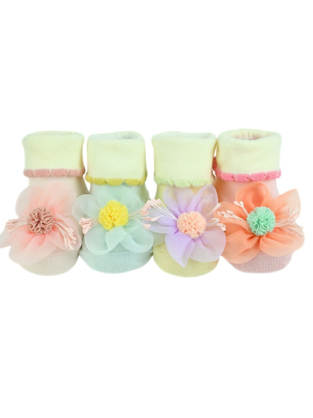 Adorable Floral Appliqué Baby Cotton Socks for Girls- Multi