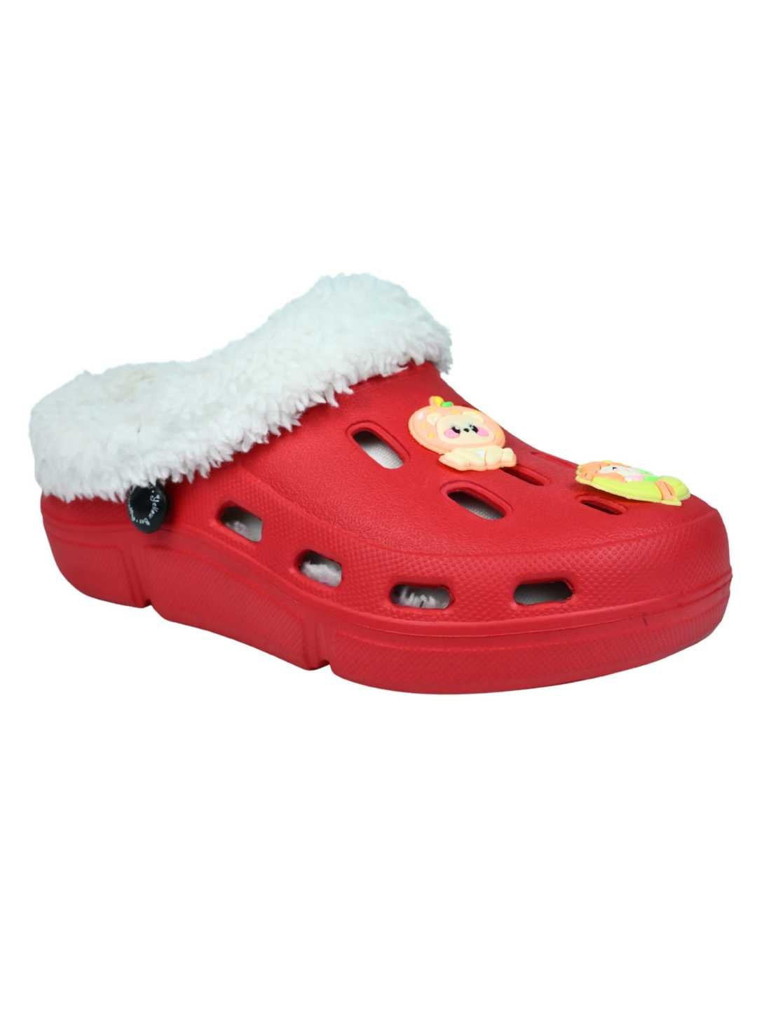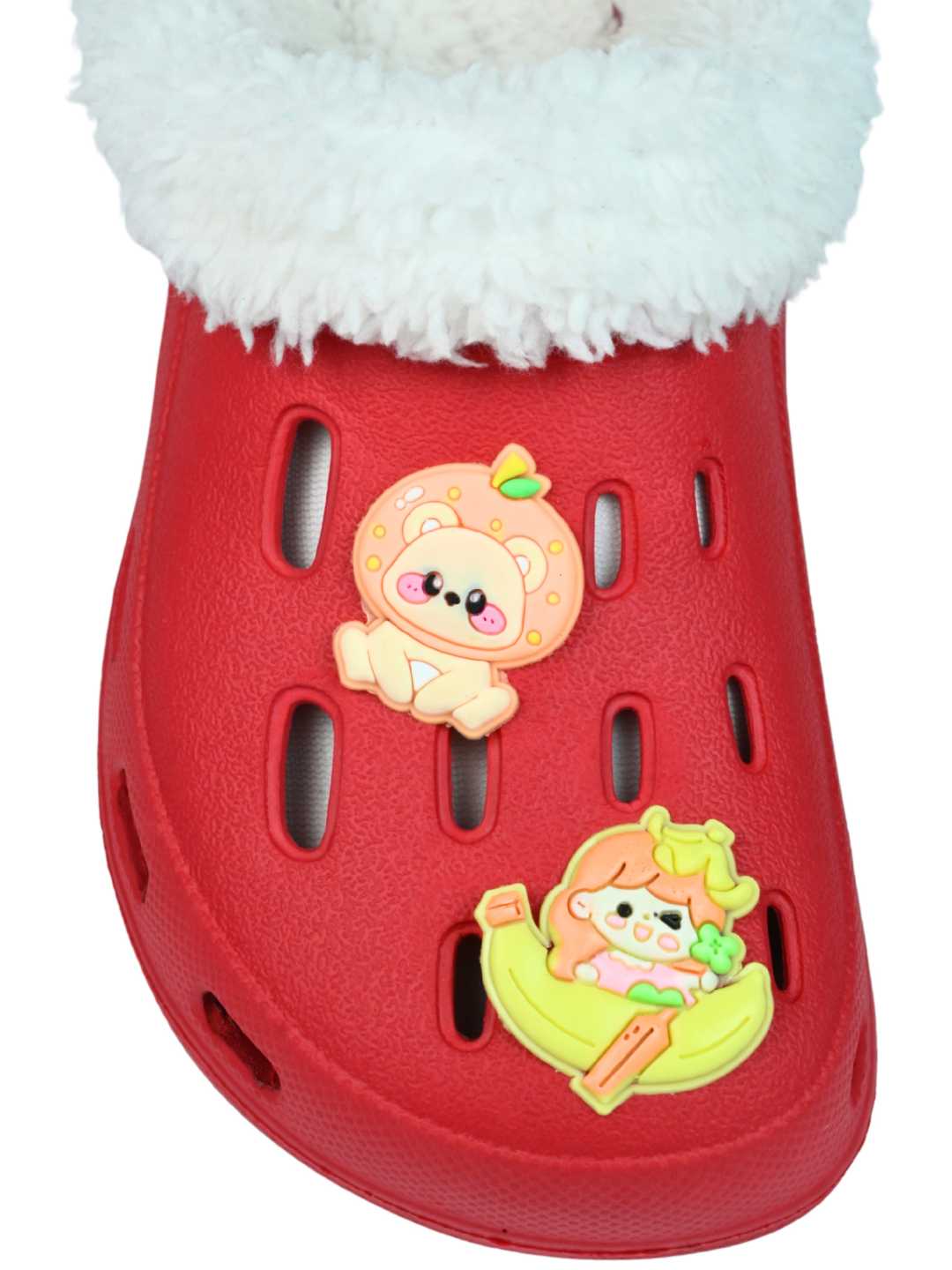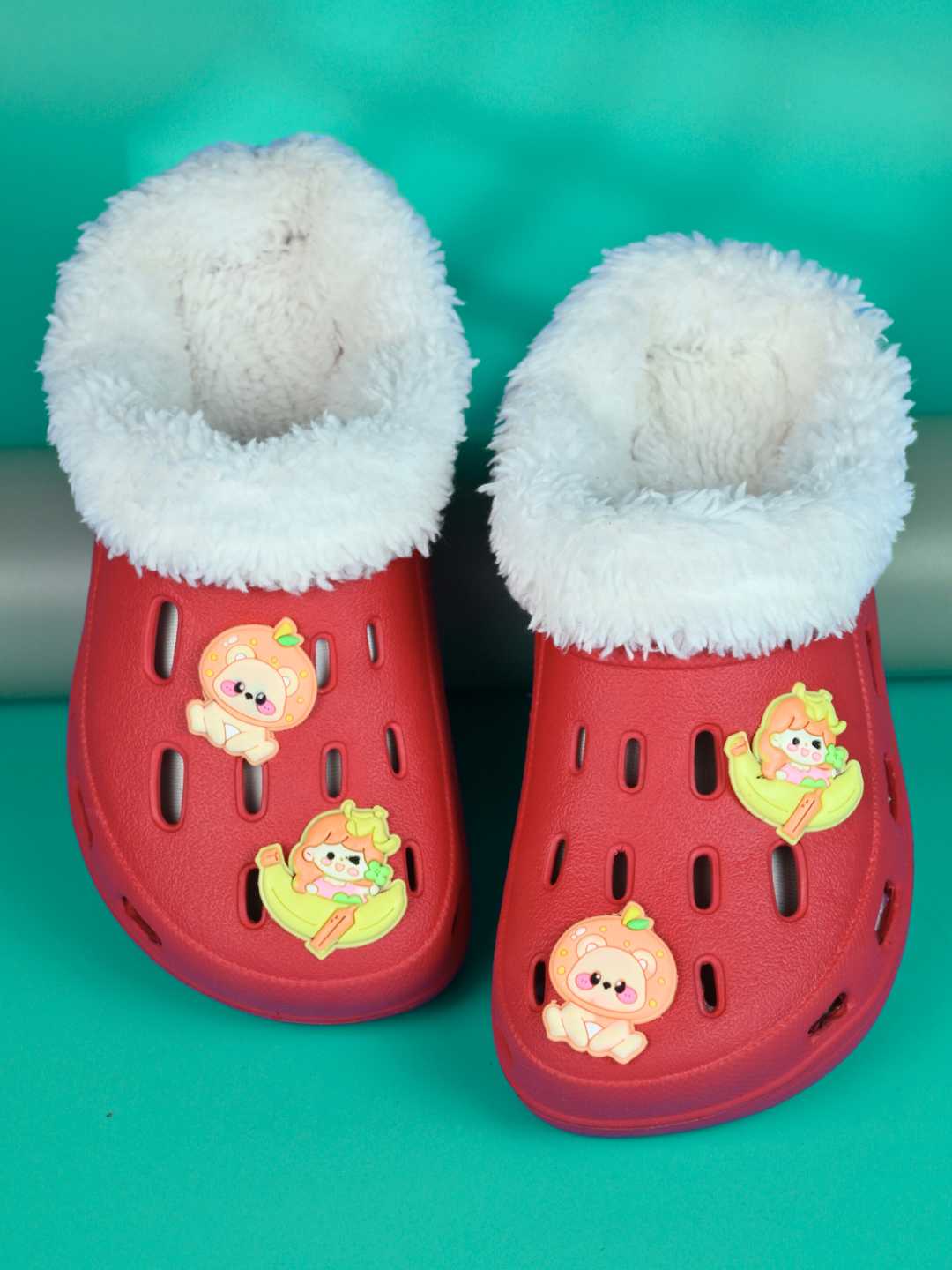 Cozy Winter Fur Lined Clogs with Bear & Doll Charms for Girls - Red