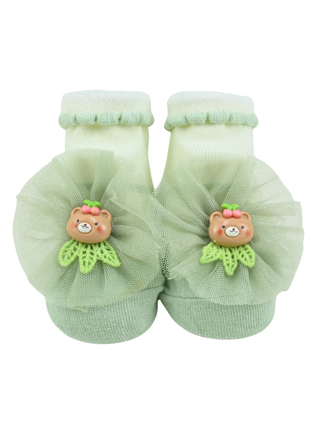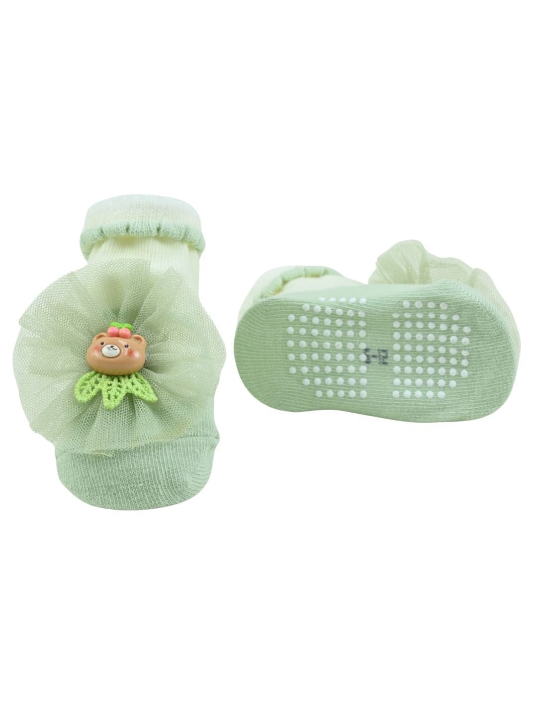 Stylish Baby Cotton Socks with Bear Charm for Girls - Green