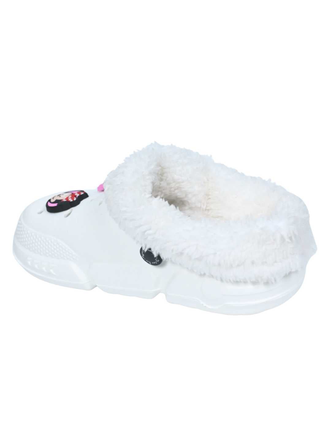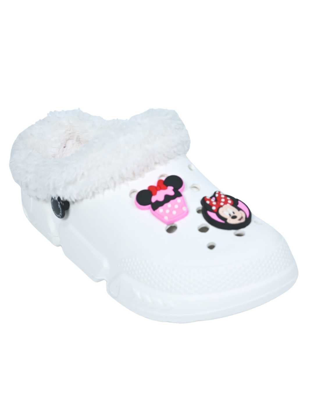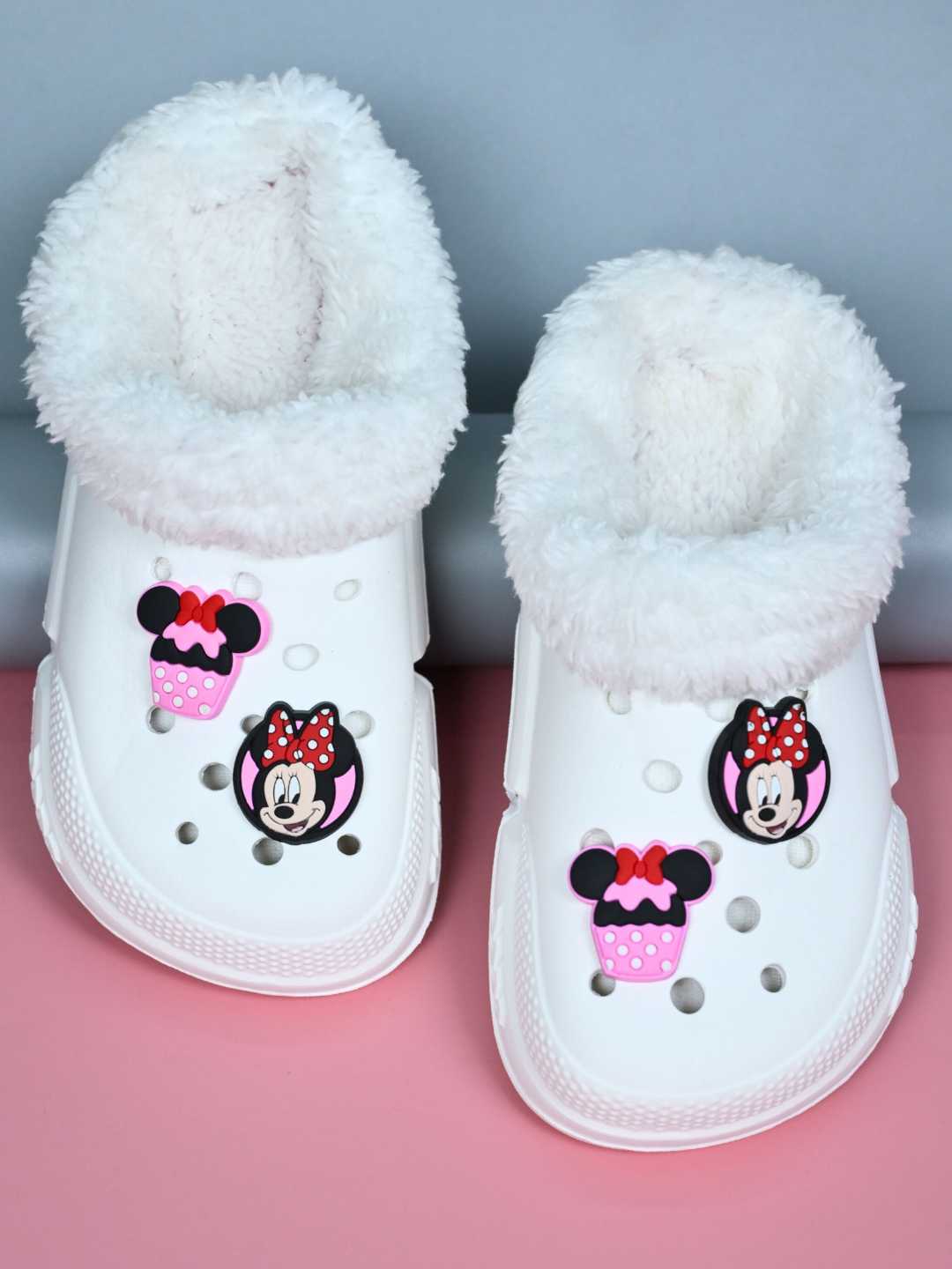 Yellow Bee Girls’ Disney Minnie Mouse Fur Lined Winter Clogs with Bow and Cupcake Charms - White