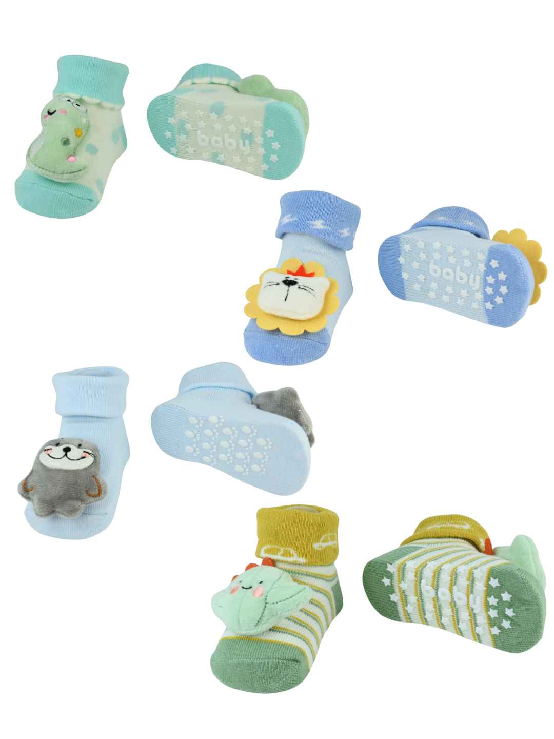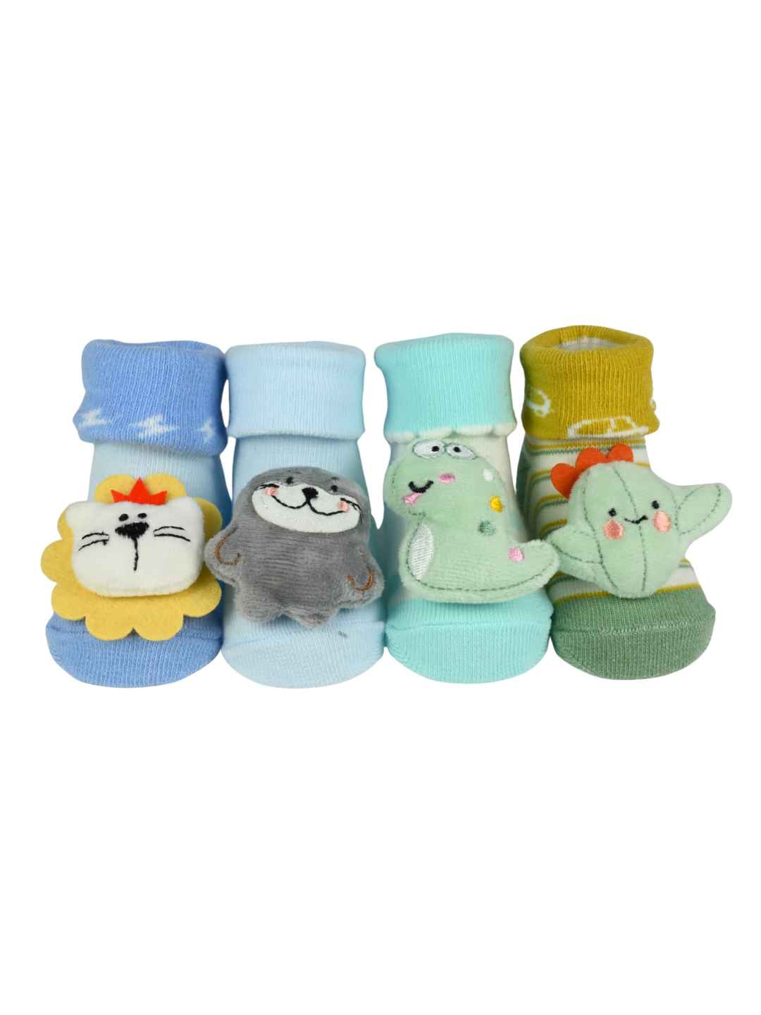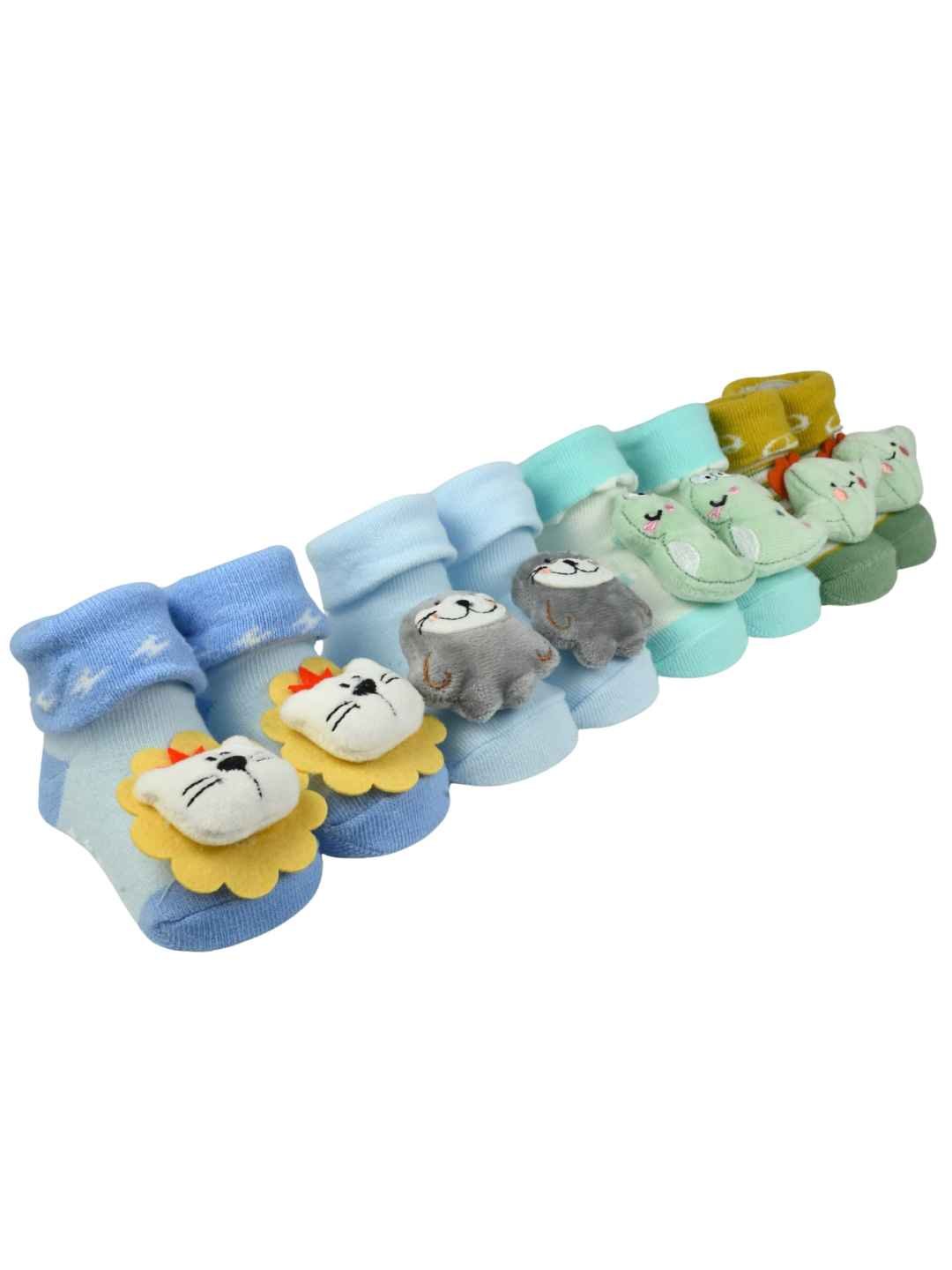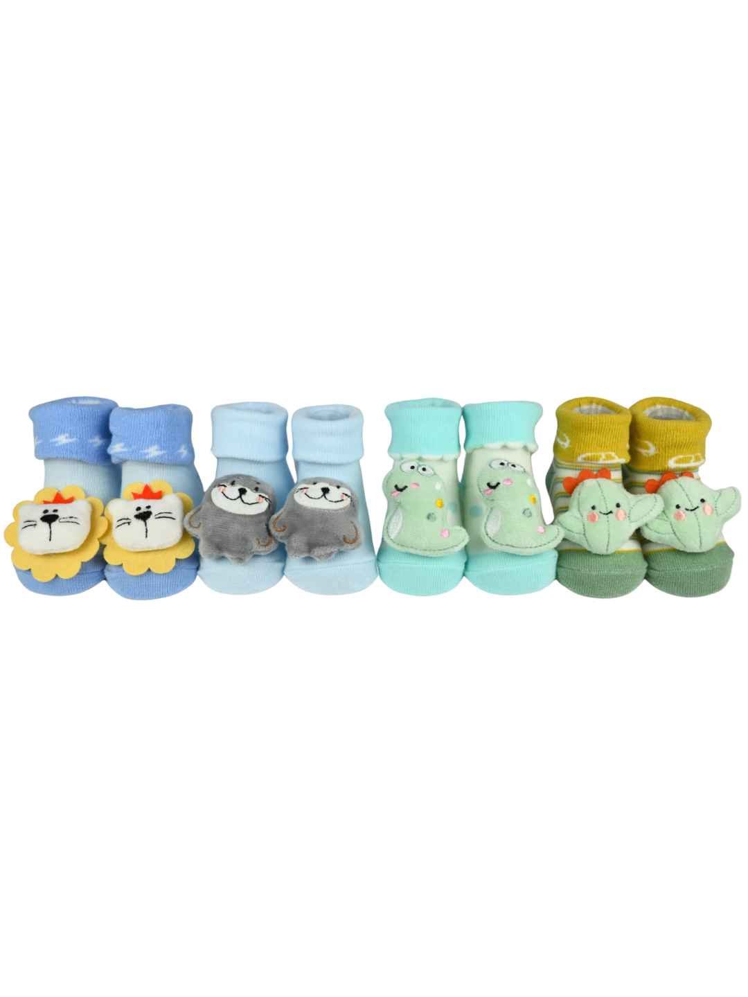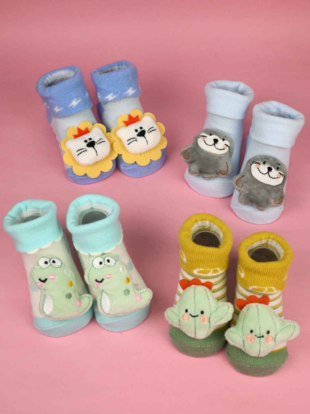 Step into the world of smiles and snuggles with Yellow Bee’s Adorable & Wild 3D Dino, Lion, Seal & Cactus Socks Set for Boys. Thoughtfully designed to make every little step exciting, this four-pair combo brings a perfect mix of play and comfort. Each pair features soft, plush 3D characters that spark joy and imagination while keeping those tiny toes warm. Made from 100% cotton, they’re breathable, skin-friendly, and crafted to last through every giggle, crawl, and adventure.