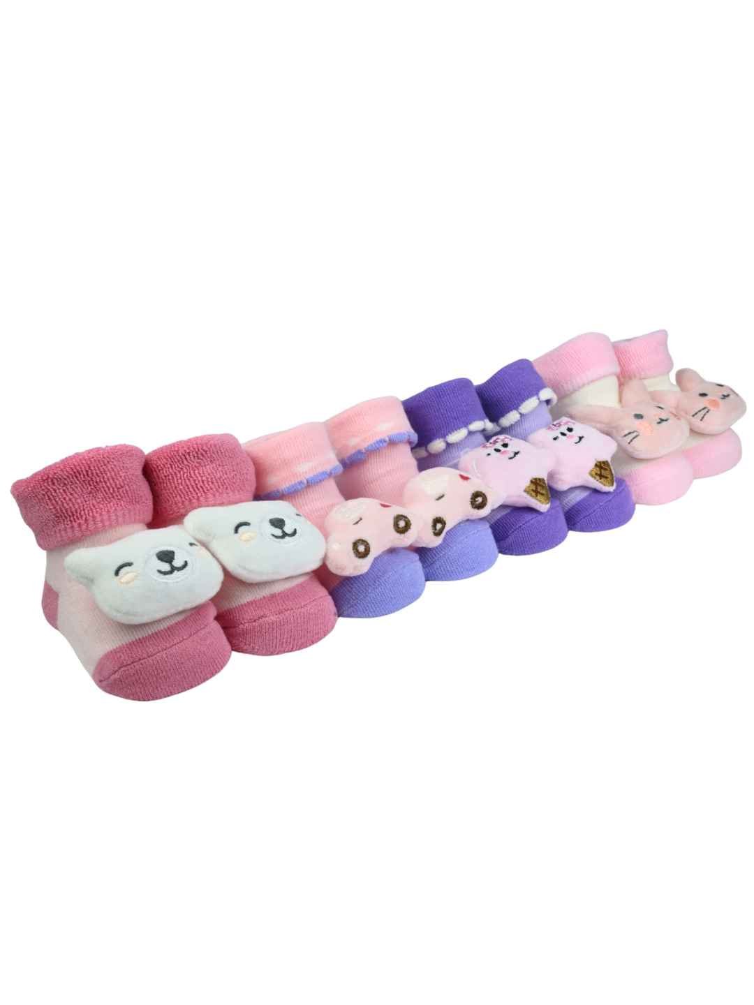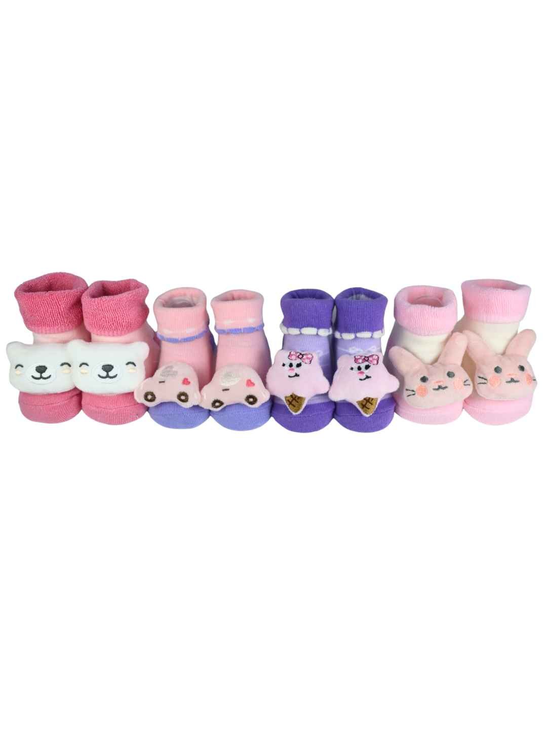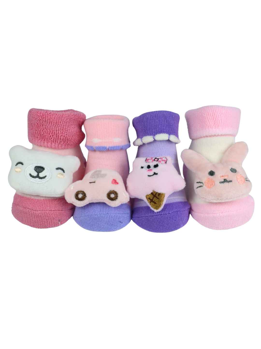 Playful 3D Car, Ice Cream, Bear & Bunny Character Socks For Girls - Multi