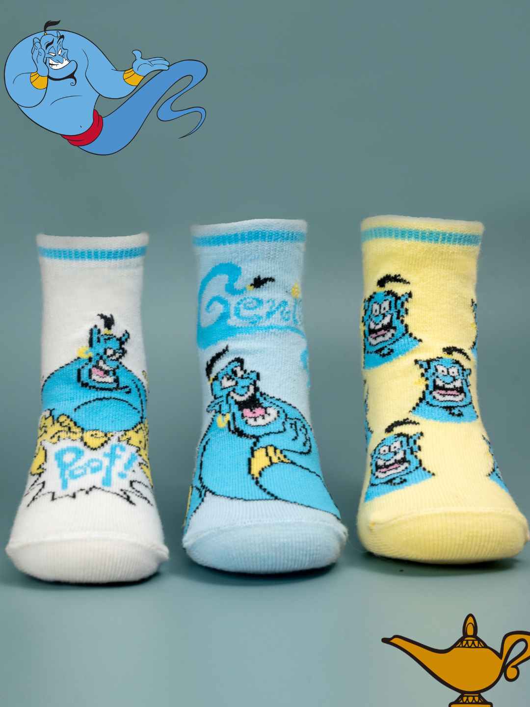 Bright Multi-Color Designs – Set includes white, yellow, and blue socks with contrasting Genie motifs, making every outfit lively and eye-catching.