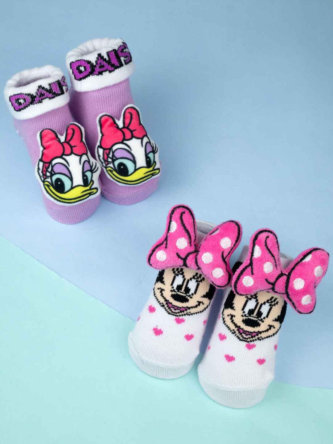 Yellow Bee Girl's Disney Minnie Mouse & Daisy Duck Design Socks Combo - Pink & Purple