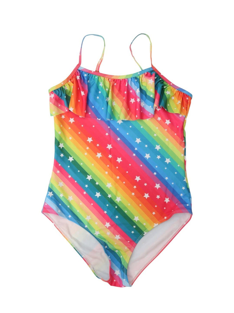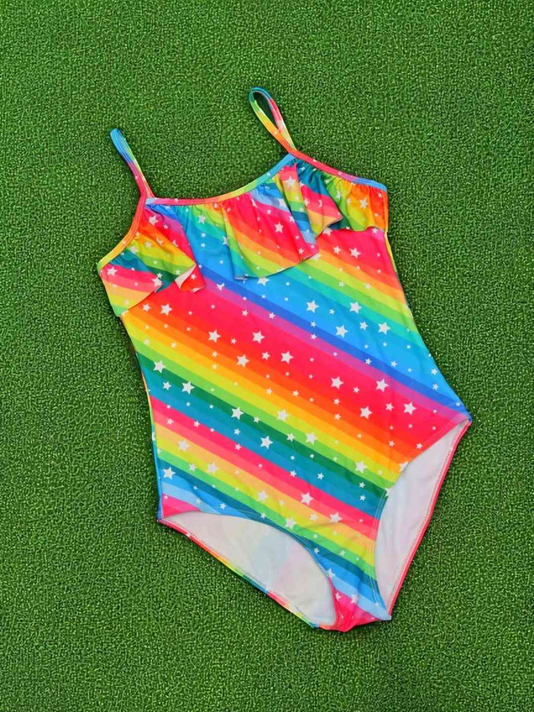 Rainbow One-Piece Swimsuit with Ruffle Neckline for Girls