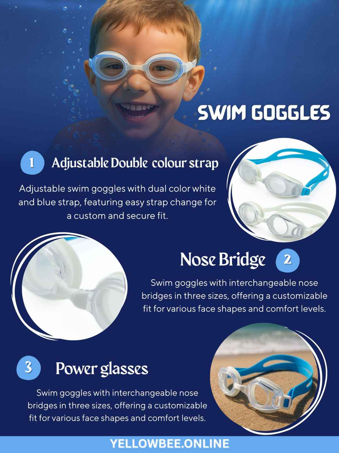 Take on every lap with precision clarity using Yellow Bee Optical Myopia Swimming Goggles – R5.0–L3.0, crafted for swimmers needing split prescription vision support. Designed to combine performance, comfort, and style, these goggles are perfect for training, leisure swims, and competition use. Equipped with durable polycarbonate lenses, the goggles provide a crisp HD view with a long-lasting anti-fog coating that keeps your vision clear underwater. Built-in UV protection shields your eyes from harmful rays during outdoor swims. The silicone gasket ensures a soft, leak-proof seal, while the split silicone strap with speed adjust clip provides a secure, tailored fit. With three nose bridge sizes (S/M/L) included, these goggles adapt to a range of facial structures. Each pair is packaged in a Yellow Bee Reusable PE Zip Lock Pouch—a lightweight, eco-friendly, and brand-forward packaging option that adds lasting value.