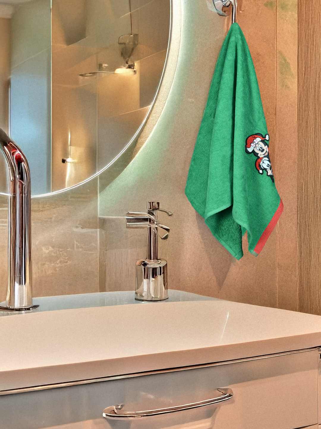 Celebrate the season with a touch of Disney magic! The Yellow Bee Disney Green Christmas Towel features a cheerful Mickey & Friends Santa embroidered design that captures the joy of the holidays. Crafted from 100% premium cotton, this towel offers superior softness, high absorbency, and lasting comfort. With a rich green hue and red border, it adds a cozy festive charm to your bathroom or holiday décor. Designed at 300 GSM, it provides just the right balance between plush comfort and quick drying-making it a holiday essential for every Disney lover.