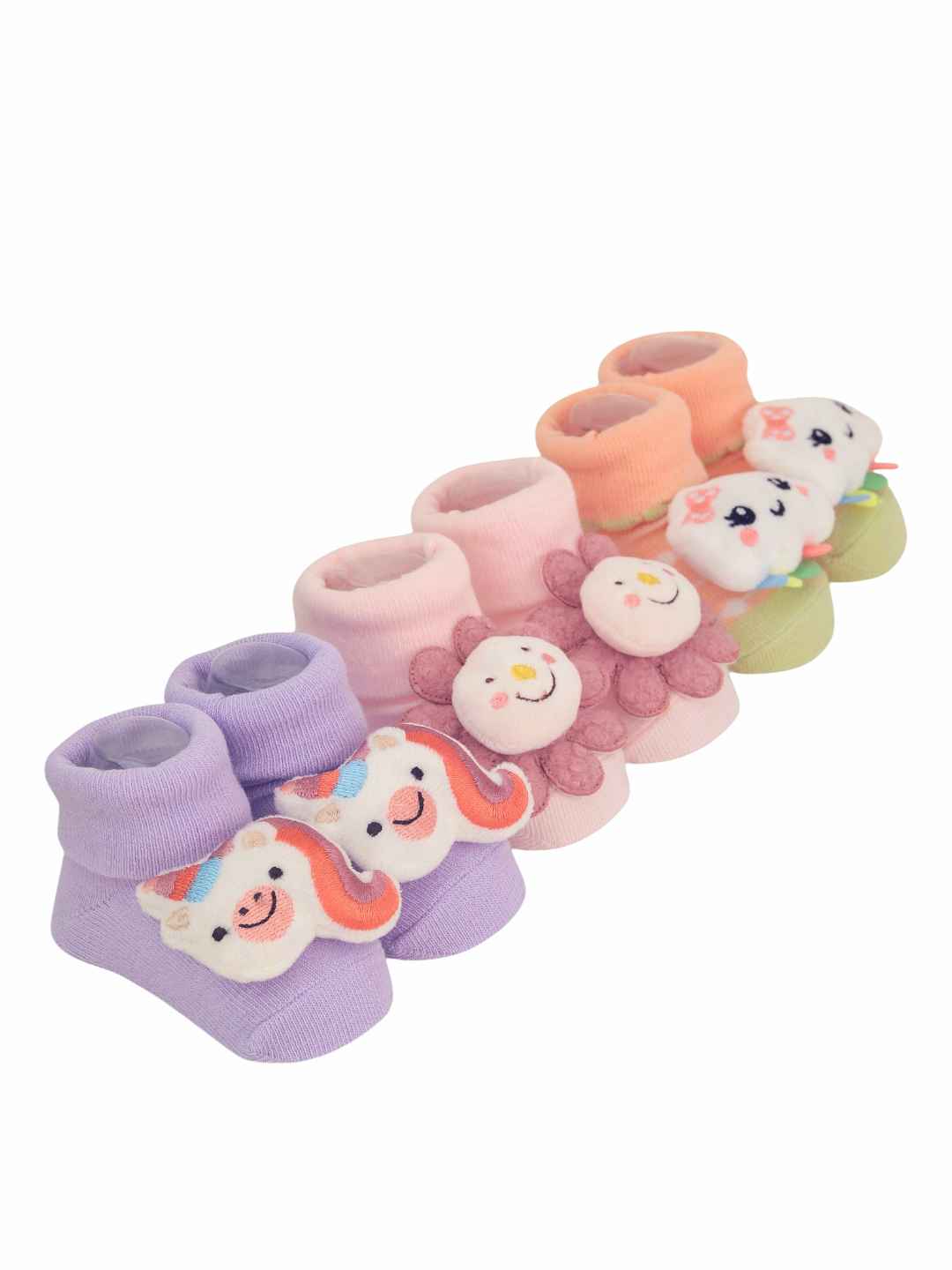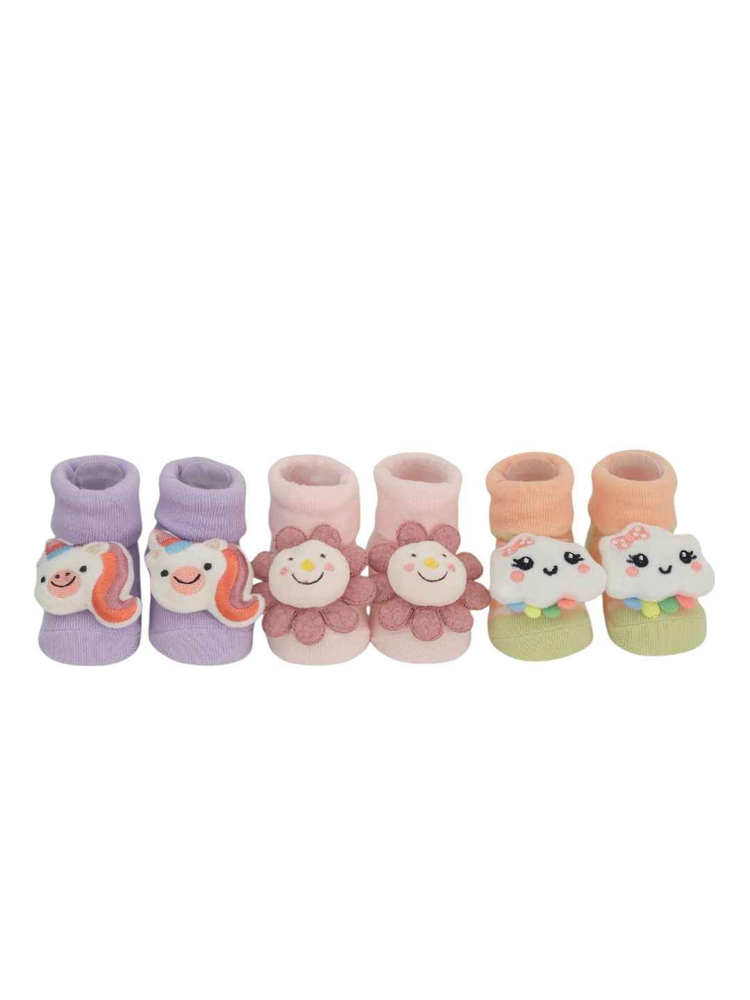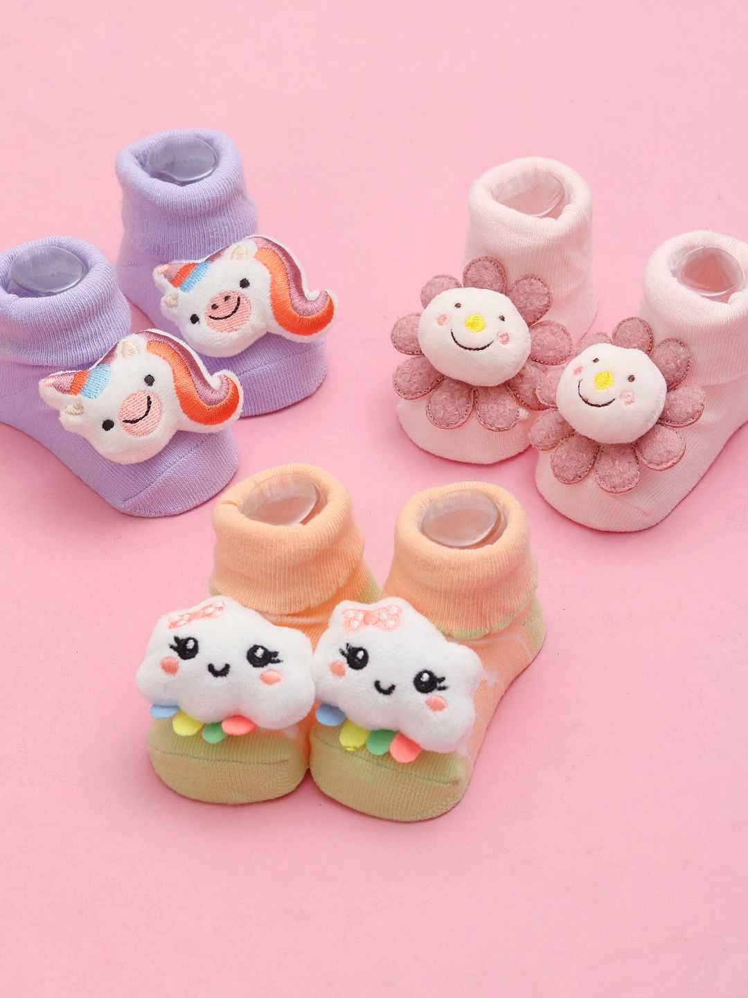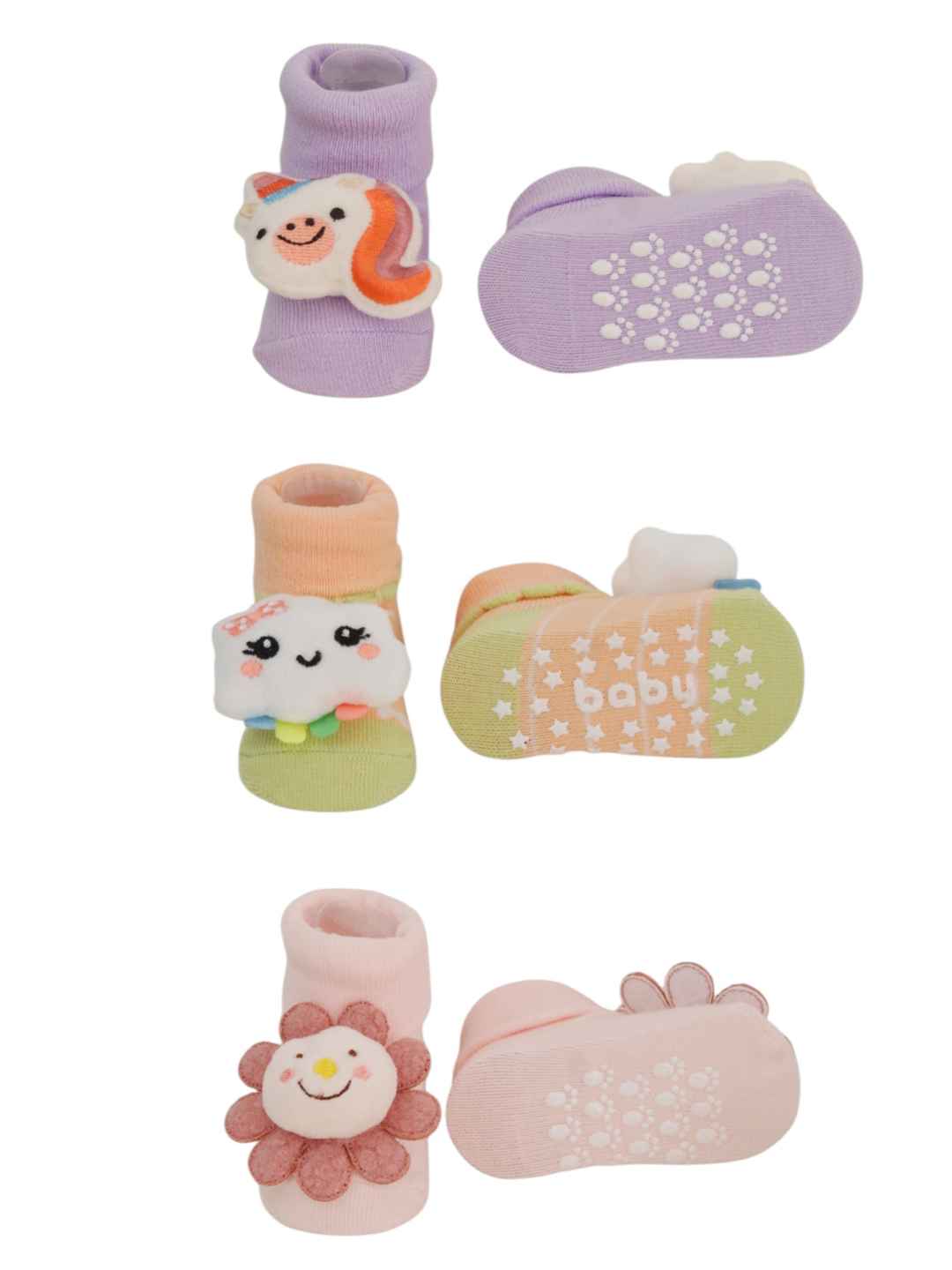 • Whimsical 3D Character Magic : Each pair features a beautifully detailed plush - a smiling unicorn, a fluffy cloud, and a blooming flower - designed to spark joy and imagination in your little one’s every step.