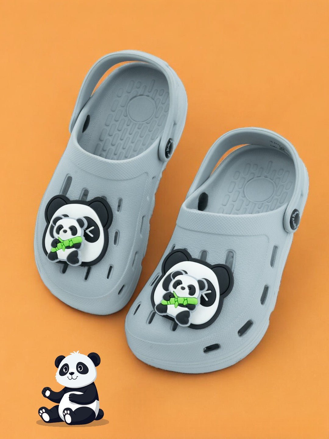 Elegant Panda & Bamboo Rotating Charms Clogs for Boys-Grey