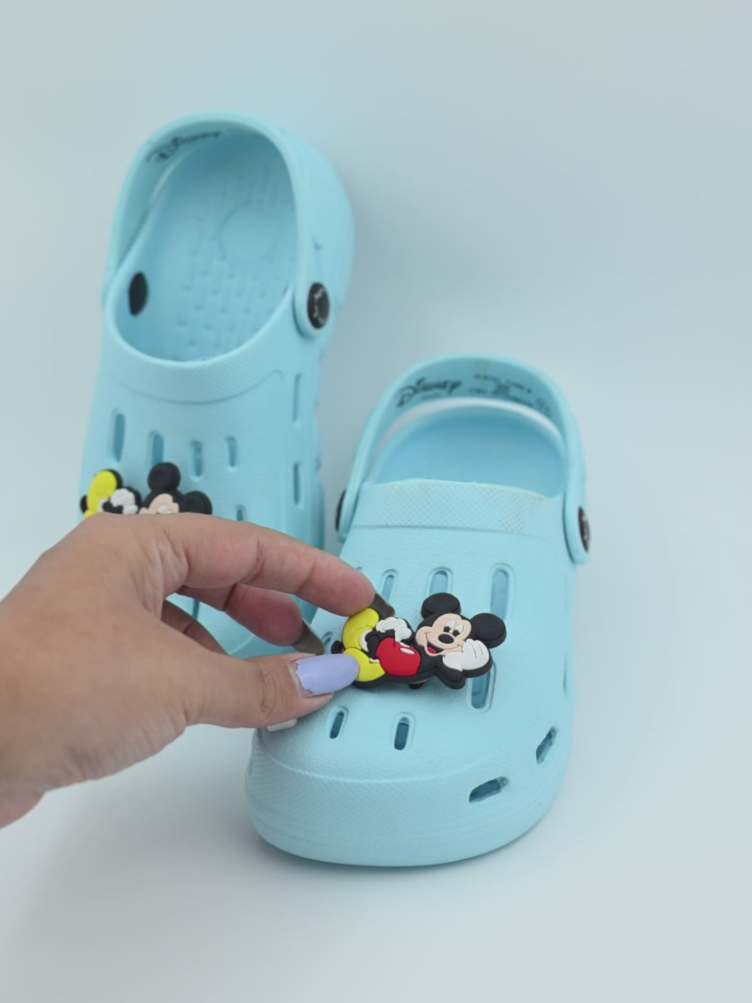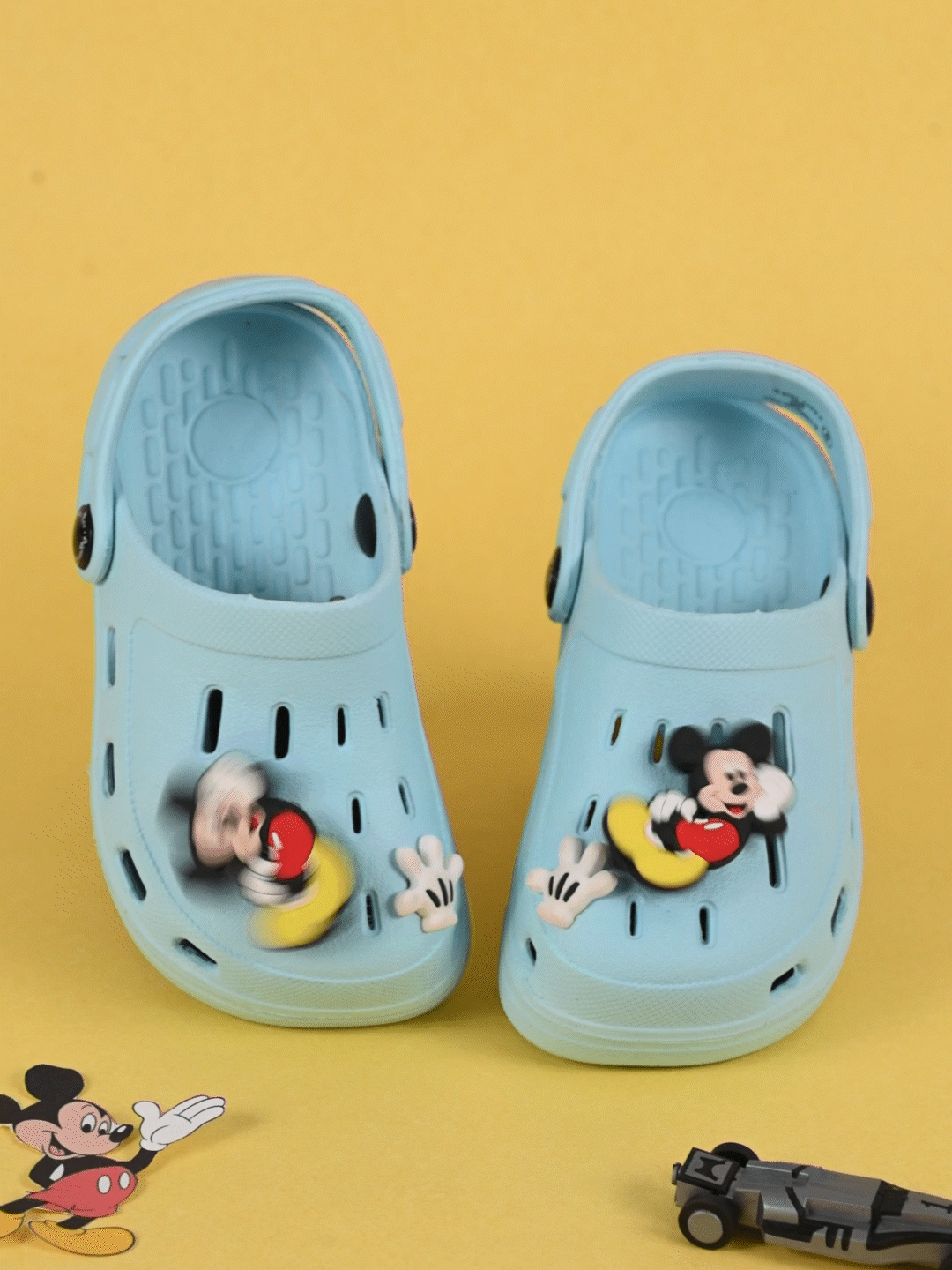 Yellow Bee Boys’ Disney Mickey Mouse Clogs with 3D Rotating Charm – Light Blue