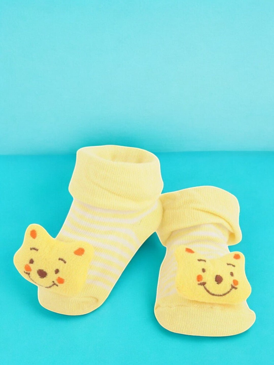Introducing the Adorable Baby Socks with Smiling Bear Design by Yellow Bee. These socks are crafted to keep your little one's feet snug and cozy, while the charming smiling bear design adds an extra touch of cuteness. Made from ultra-soft fabric, these socks are gentle on baby’s sensitive skin, making them ideal for all-day wear.