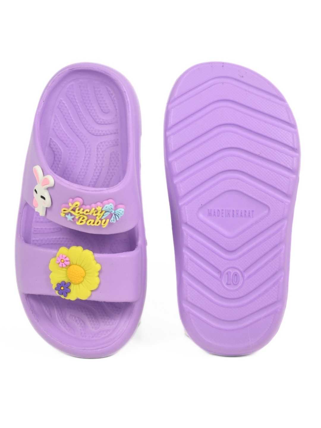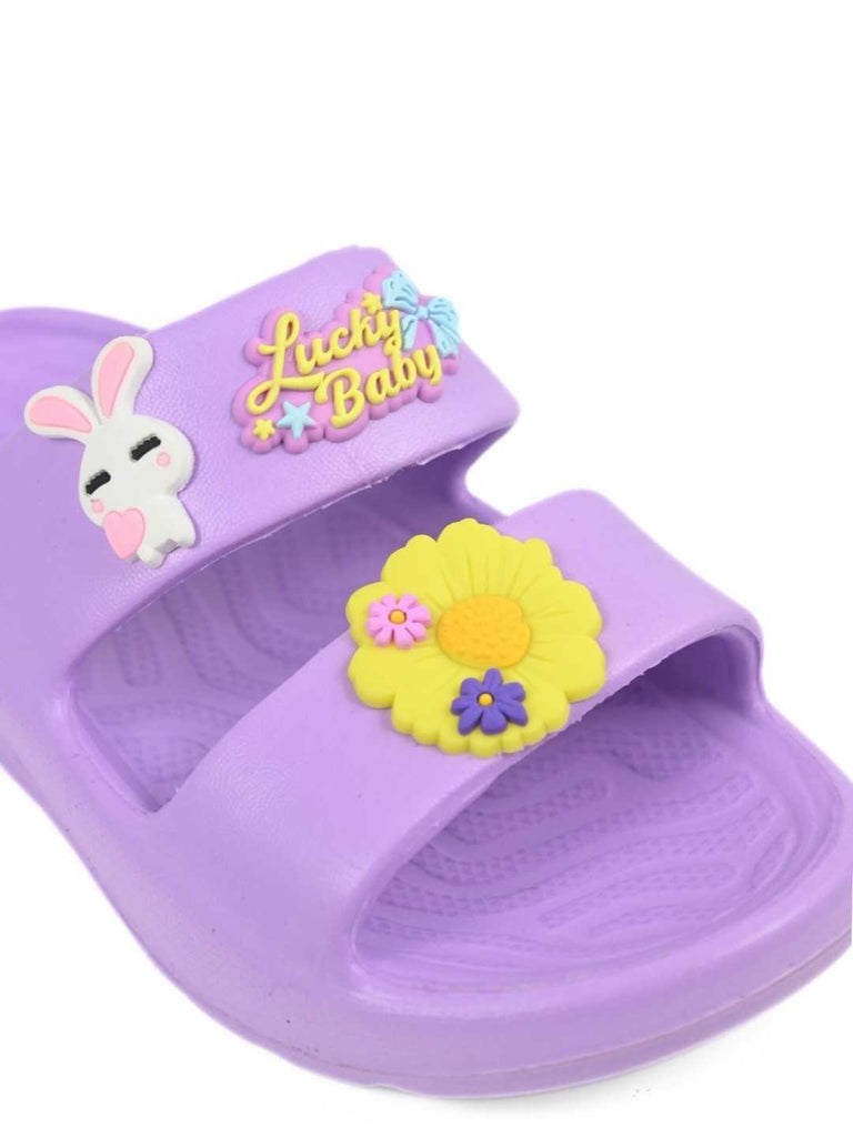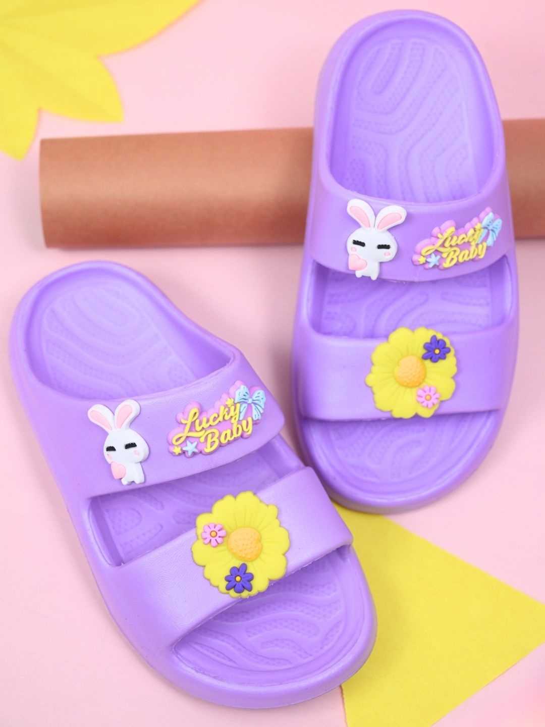 Adorable Bunny with Floral Charm Slides for Girls – Purple