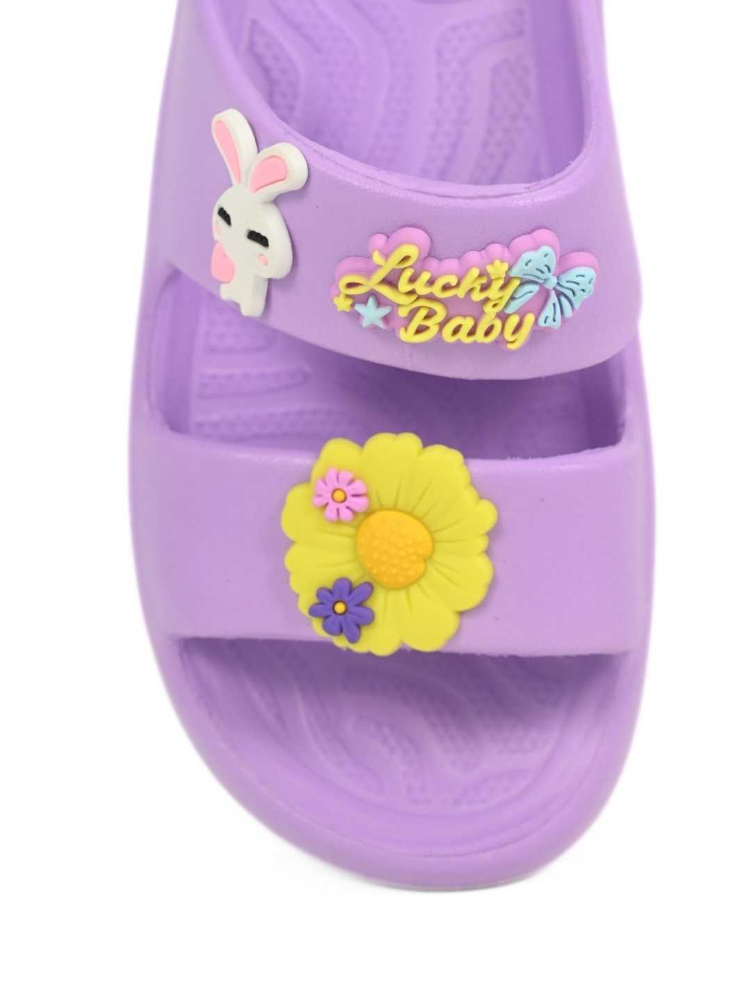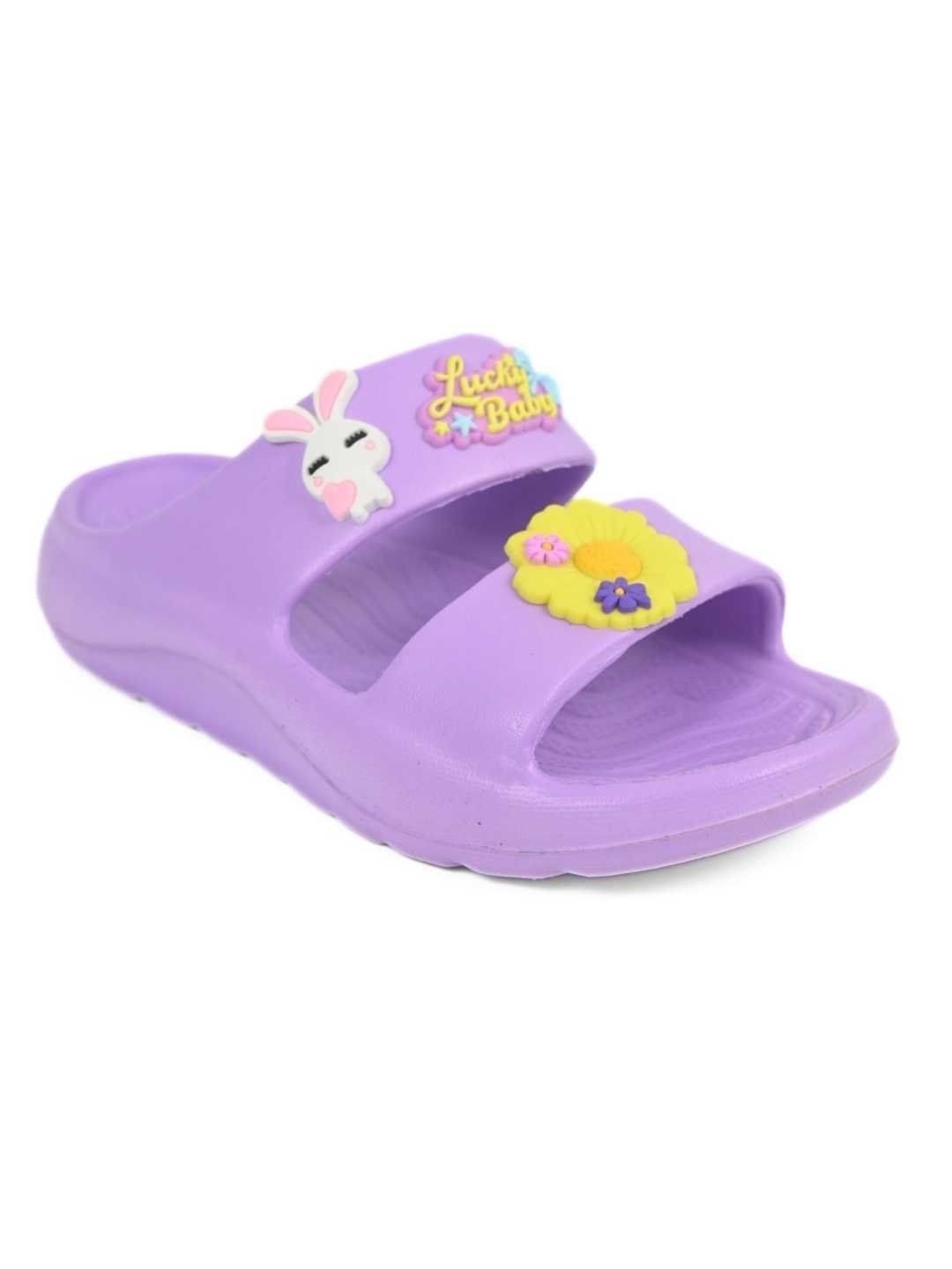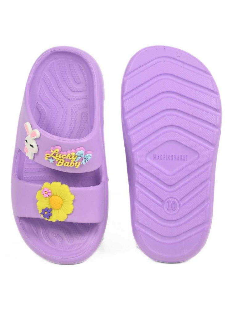 Adorable Bunny with Floral Charm Slides for Girls – Purple