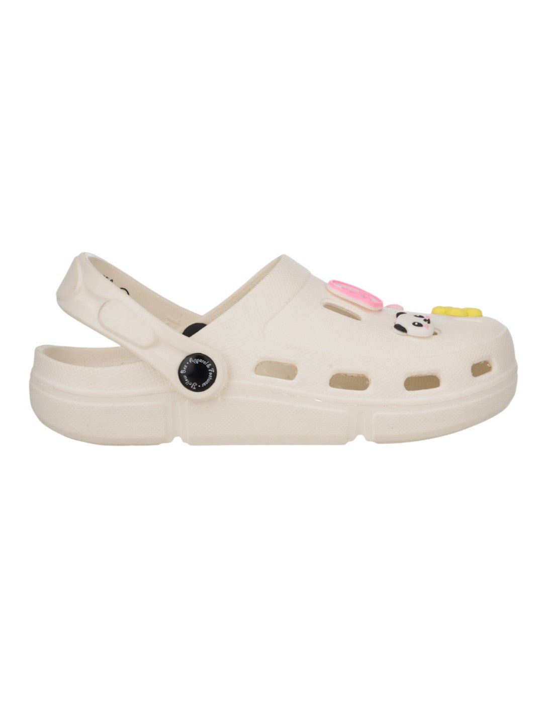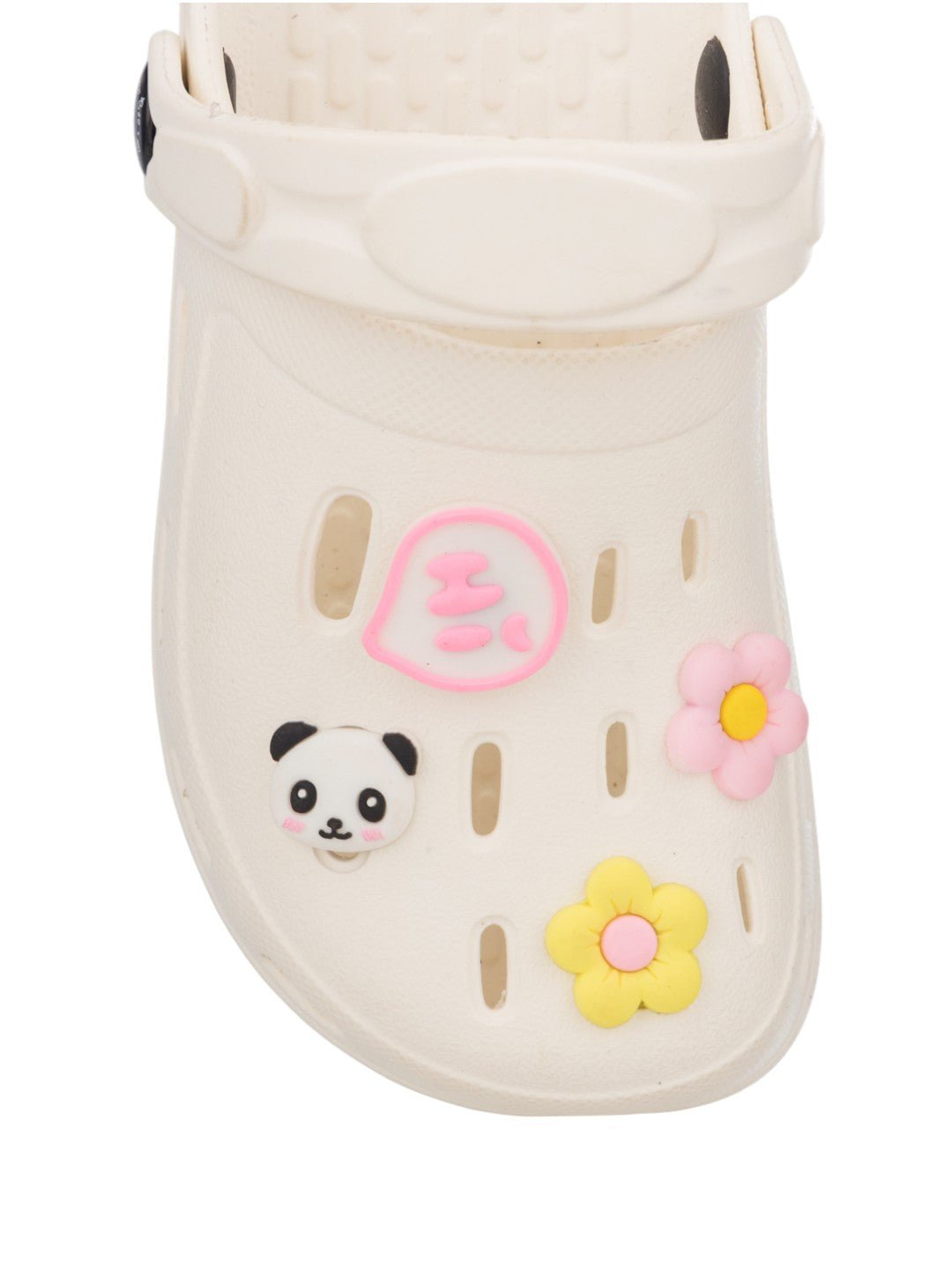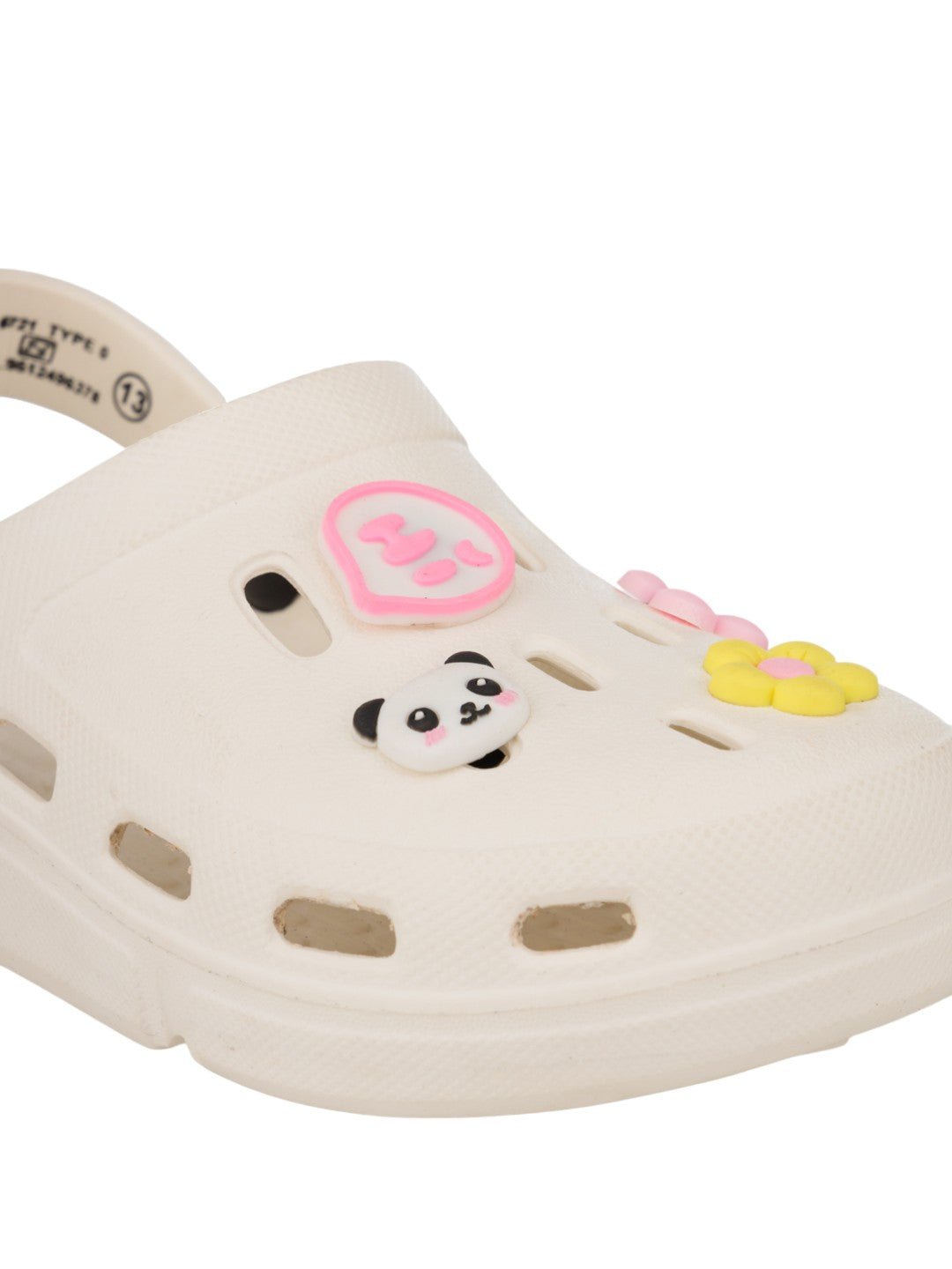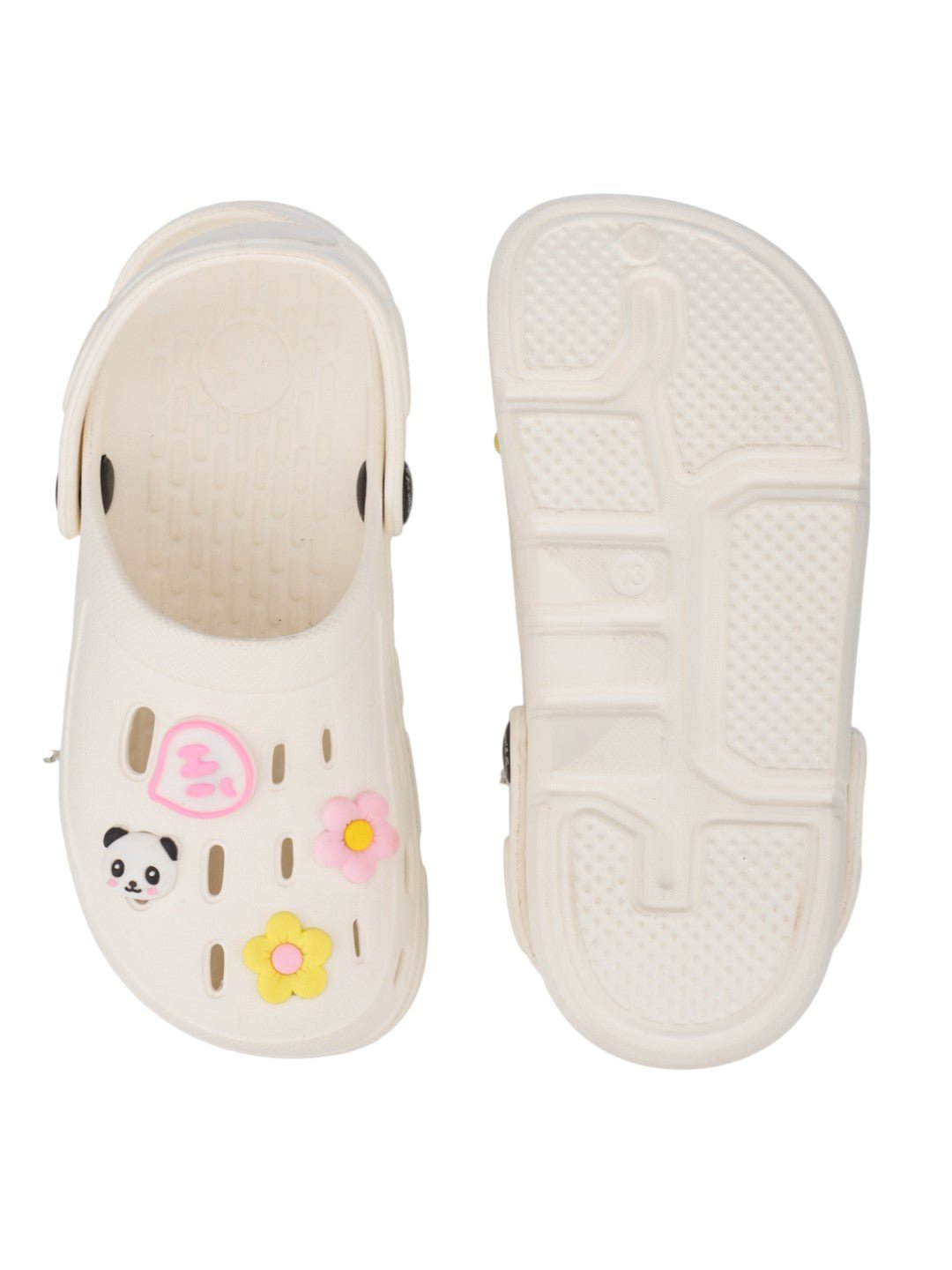 Adorable Clogs with Panda Faces, Hearts, Flowers and Hi Charm for Girls- White