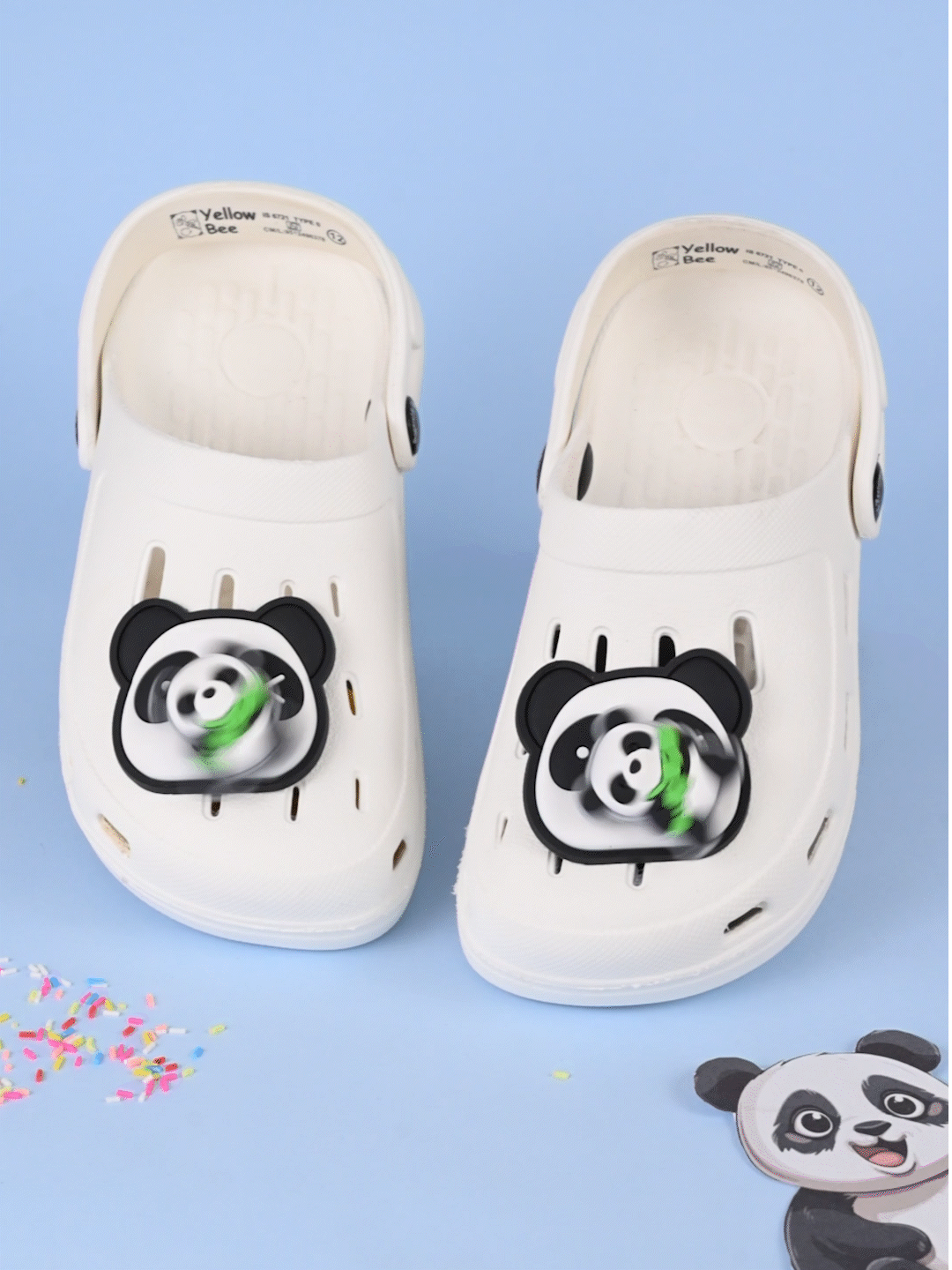 Adorable Panda & Bamboo Rotating Charms Clogs for Girls- White