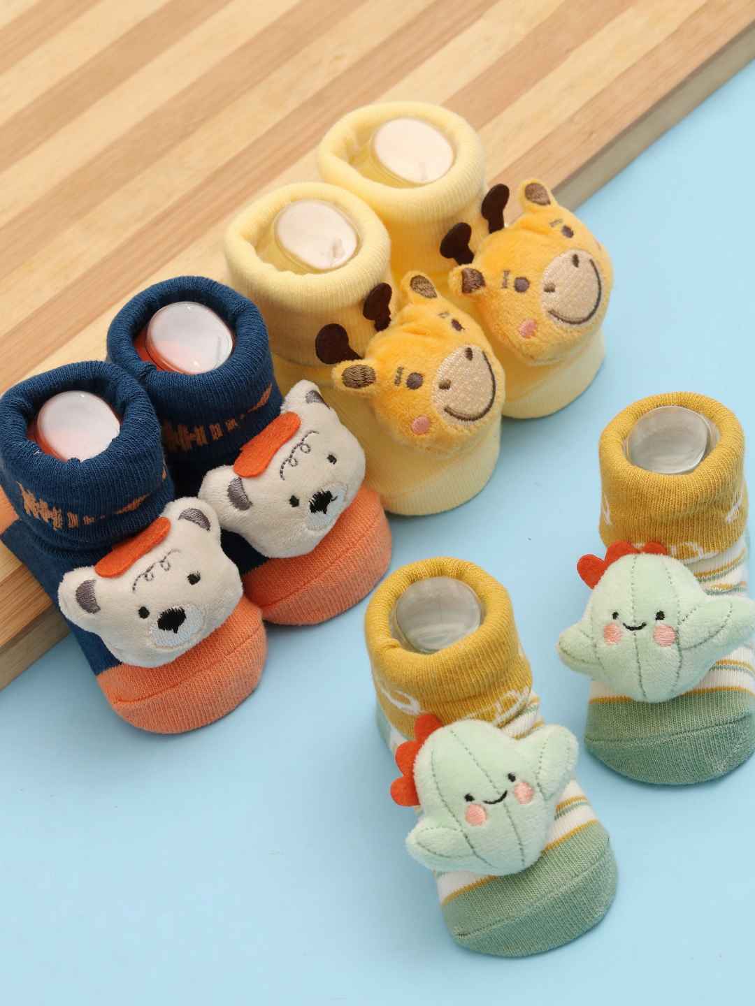 Adorable & Soft 3D Giraffe, Cactus & Bear Design Socks For Boys - Multi