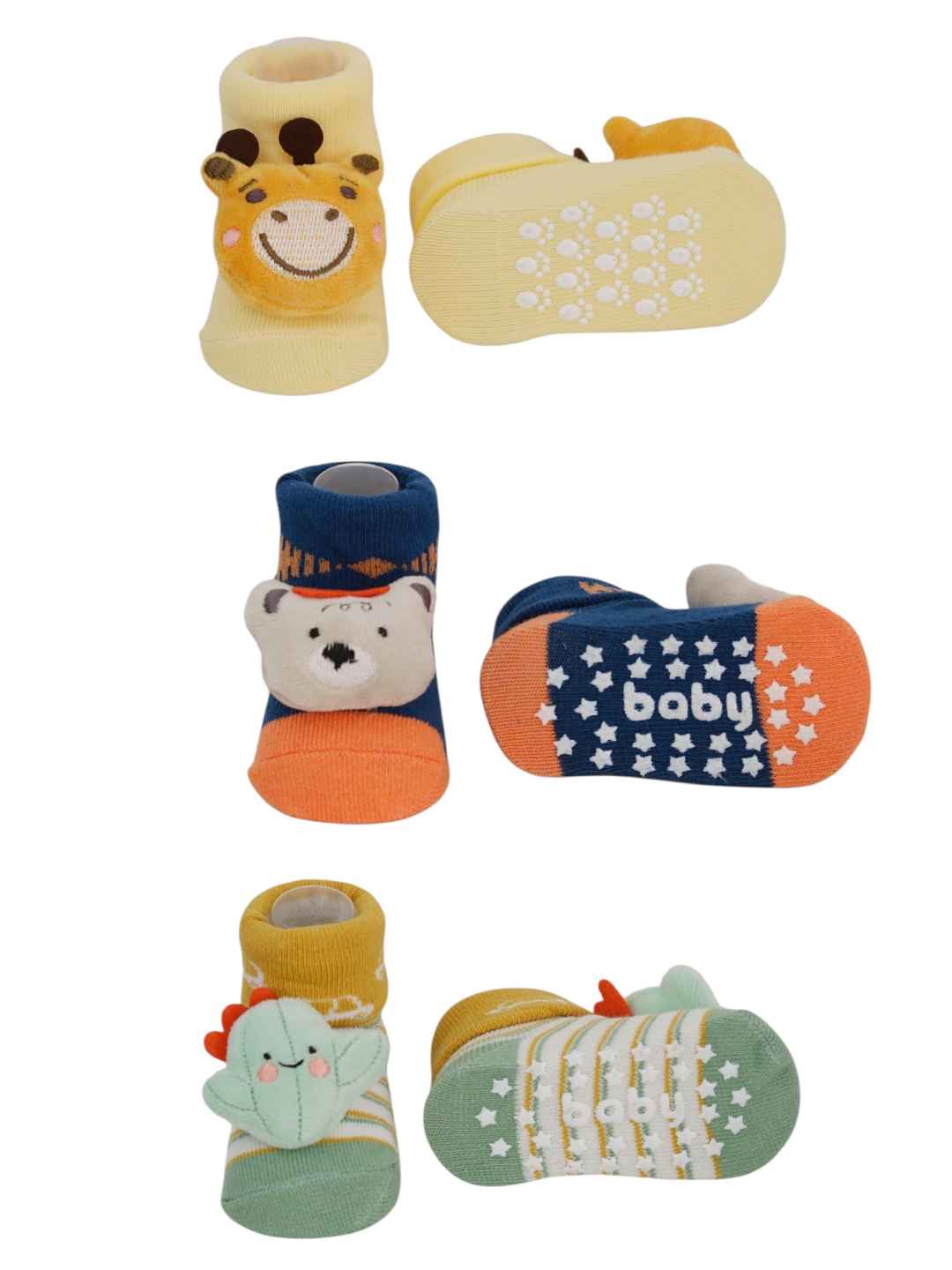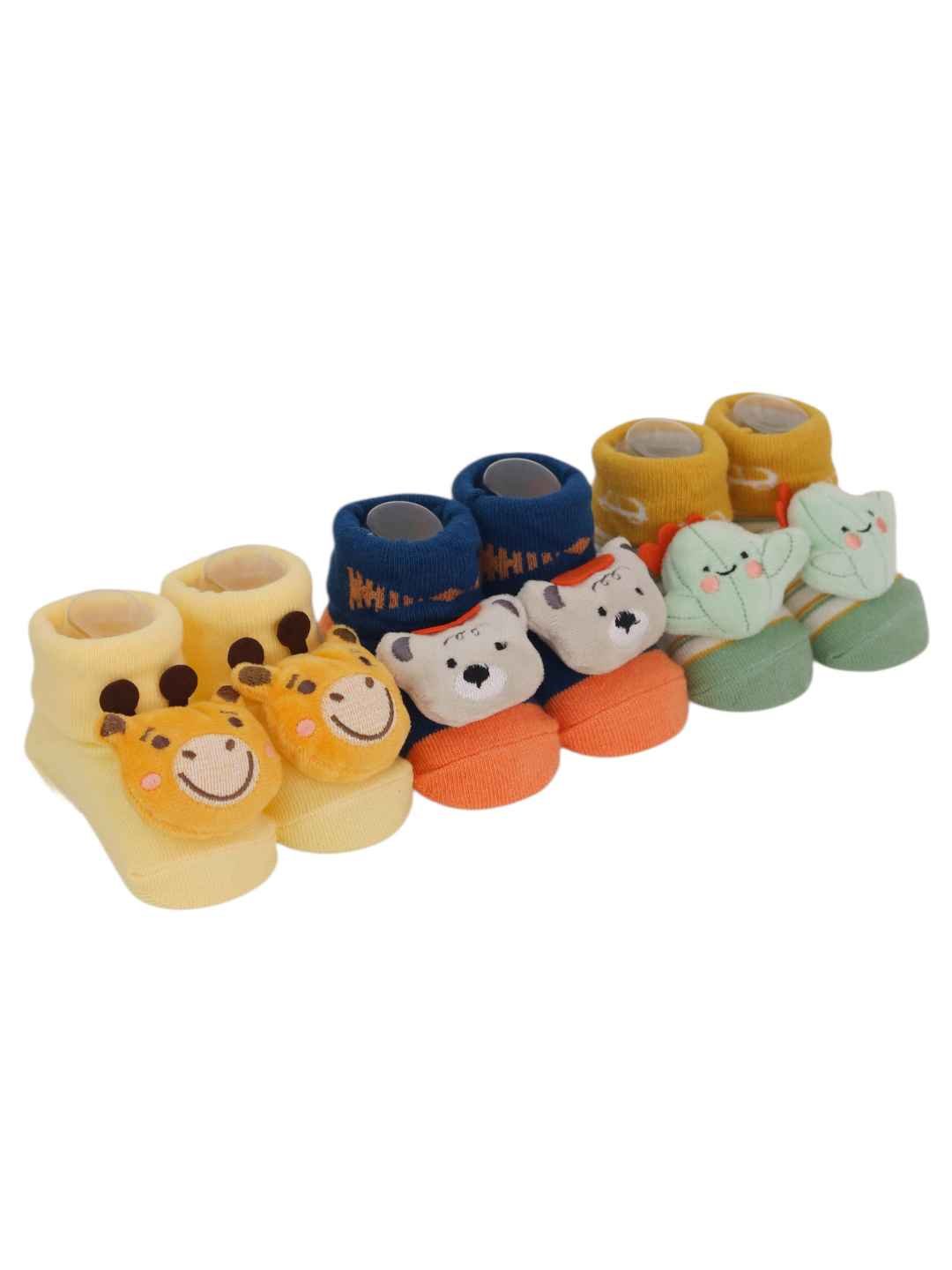 Wrap your little one’s feet in pure comfort and charm with Yellow Bee’s Adorable & Soft 3D Giraffe, Cactus & Bear Design Socks for Boys. Crafted from 100% breathable cotton, each pair offers a gentle, plush touch that keeps tiny toes cozy all day long. The playful 3D animal characters bring smiles with every step, turning daily wear into a moment of fun and imagination. Perfectly designed for comfort, cuteness, and carefree playtime — these socks make dressing up delightful and easy.